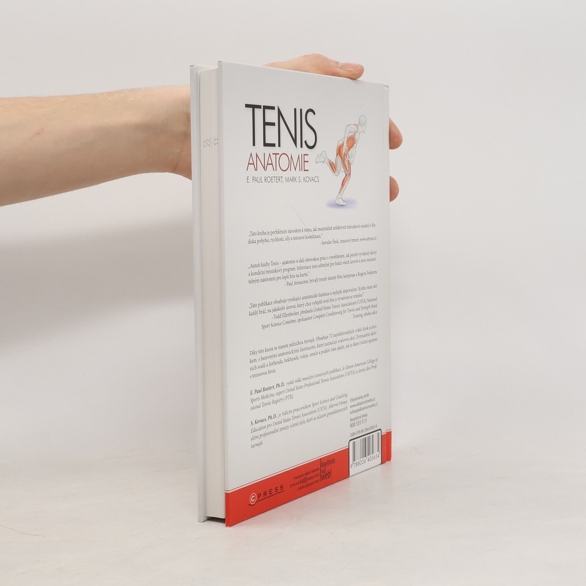 Váš ilustrovaný průvodce pro sílu, rychlost a akceschopnost Autoři této knihy si dali obrovskou práci s vysvětlením, jak použít vyvážený silový a kondiční tréninkový program. Informace jsou užitečné pro hráče všech úrovní a jsou neocenitelným nástrojem pro lepší hru na kurtu.“ _Paul Annacone, současný trenér Rogera Federera a někdejší trenér tenisty Peta Samprase „Tato kniha je nezbytným zdrojem informací pro hráče i trenéry. Roetert a Kovacs poskytují odborné instrukce a přirozený pohled do hry.“ _John Isner, hráč Davis Cupu za USA „ Tato kniha obsahuje vynikající anatomické ilustrace a nejlepší doporučení. Knihu musí mít každý hráč, na jakékoliv úrovni, který chce vylepšit svoji hru a vyvarovat se zranění.“ _Todd Ellenbecker, předseda United States Tennis Association’s (USTA) National Sport Science Comittee spoluautor Complete Conditioning for Tennis and Strength Band Training, druhá edice. Tato kniha vám ukáže nový pohled na vaší hru - jak se stát jedničkou turnajů zlepšením síly, rychlosti a schopnosti k výkonnějším podáním a přesnějším úderům.