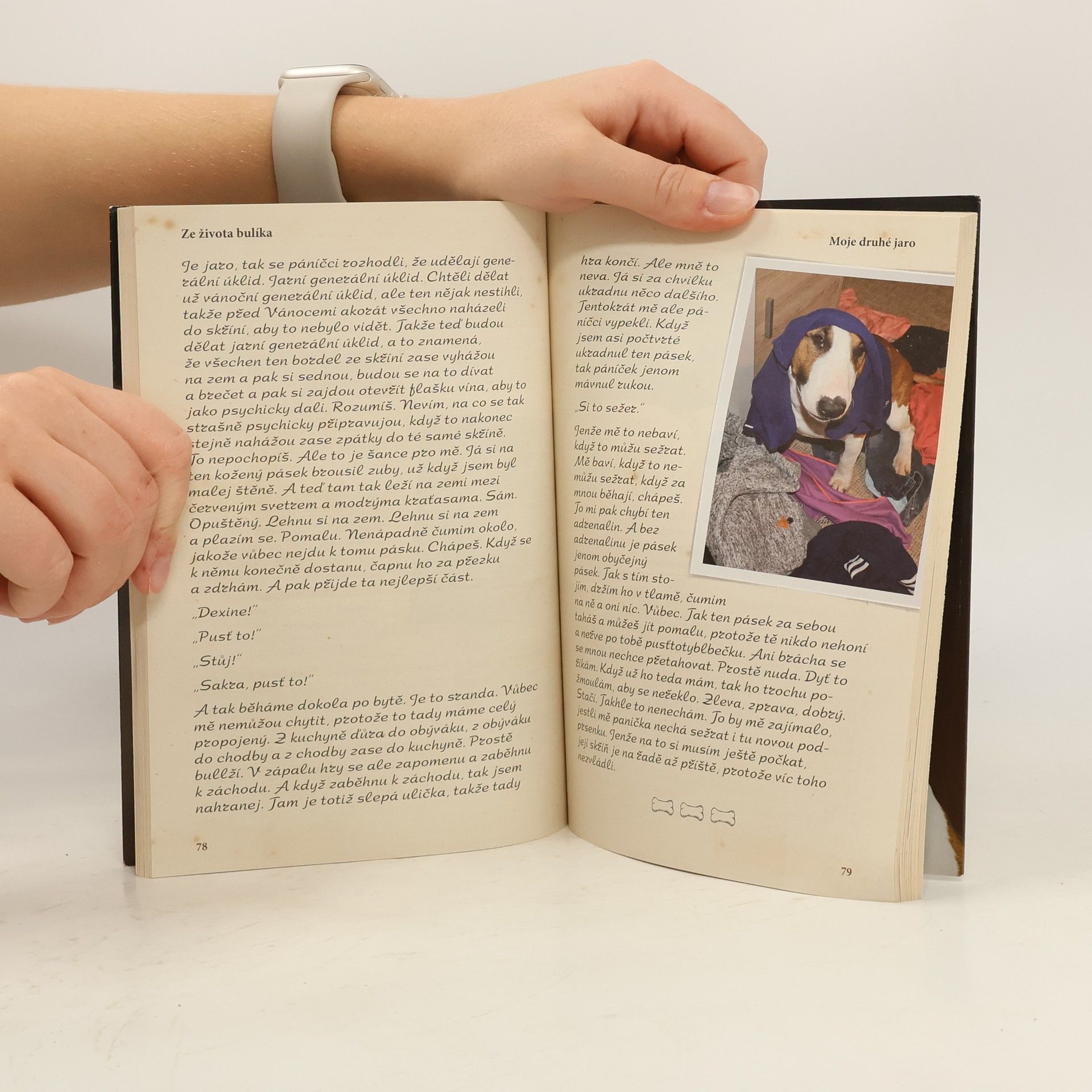 "Ahoj kamarádi! Jmenuju se Dexter a jsem anglický bulteriér. Angličák, chápeš… I když tak docela Angličák nejsem, žiju totiž se svou paničkou a páníčkem v Olomouci. Mám to tady moc rád. Jsem děsně roztomilej pes. Roztomilej, dobrej… a taky frajer. Páníčci mi občas říkají blbečku, ale to mi nevadí. Taky jsou to blbečci. Hodně lidí mi ale říká bojové plemeno nebo držtesitubestii. To nepochopíš. Občas sice bojuju se spánkem nebo hladem, ale jinak jsem hodnej a poslušnej pes. Teda úplně vždycky poslušnej nejsem, ale to jen proto, aby si panička tolik nezvykala. Občas jí roztáhnu pár bot a požmoulám podprdu - to jsem pak pusťtotyblbečku. Pes aby se v tom vyznal. Pane bullže, mám to s nima občas těžký. Ale stejně bych je nevyměnil. Ani je, ani svoje sourozence. Tak se chci s vámi kamarády o ten svůj život podělit. Je totiž dost bullží!" Ottovo nakladatelství přináší unikátní knižní vydání úspěšného blogu a facebookové stránky mladé a originální české autorky Romany Skálové. Barvitě se v něm vypráví o prvních letech psího života jednoho olomouckého bulteriéra Dextera.