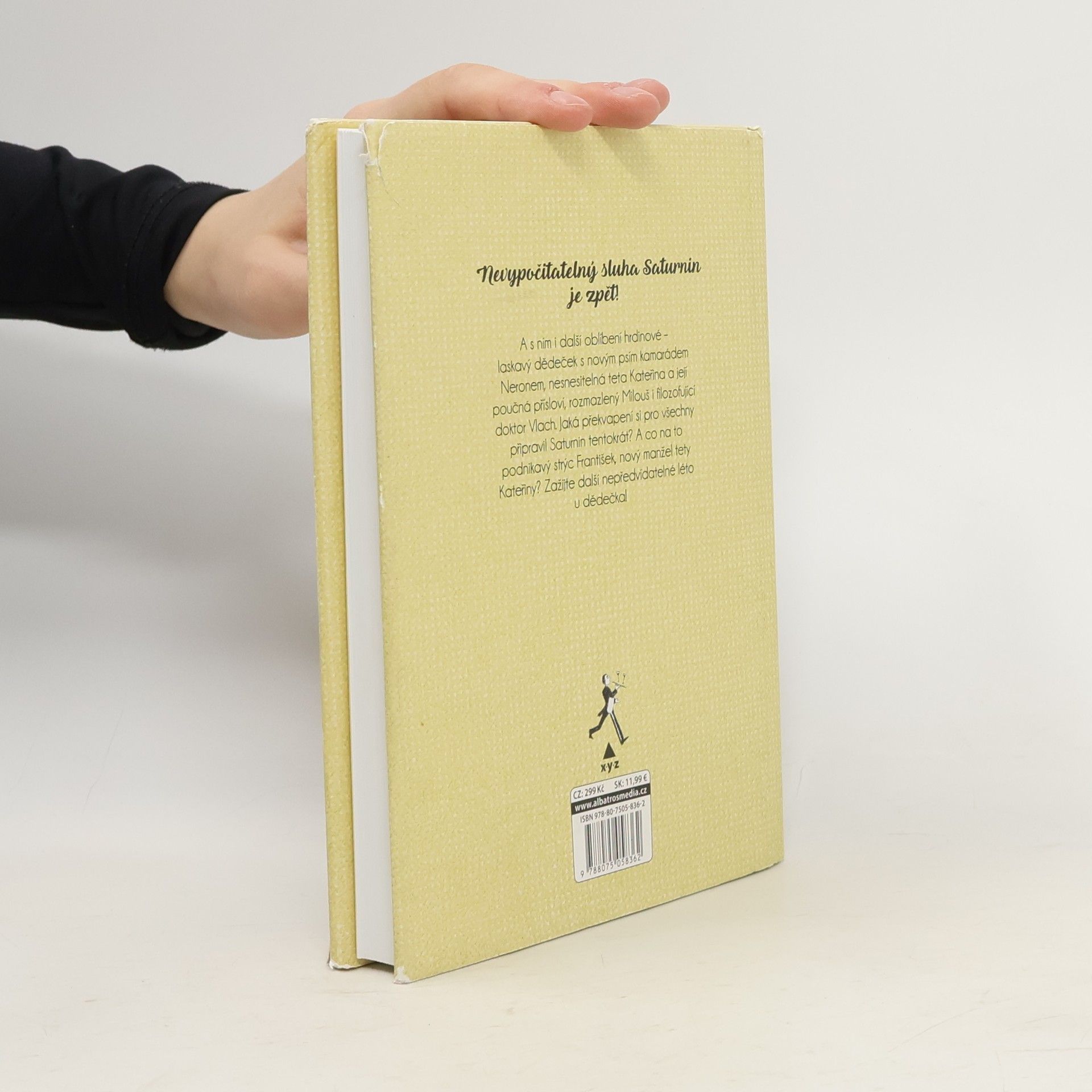 „Slavná humoristická kniha, která baví již několik generací čtenářů, pokračuje!“ Nevypočitatelný sluha Saturnin je zpět! A s ním i další oblíbení hrdinové – laskavý dědeček s novým psím kamarádem Neronem, nesnesitelná teta Kateřina a její poučná přísloví, rozmazlený Milouš i filozofující doktor Vlach. Jaká překvapení si pro všechny připravil Saturnin tentokrát? A co na to podnikavý strýc František, nový manžel tety Kateřiny? Zažijte další nepředvídatelné léto u dědečka!