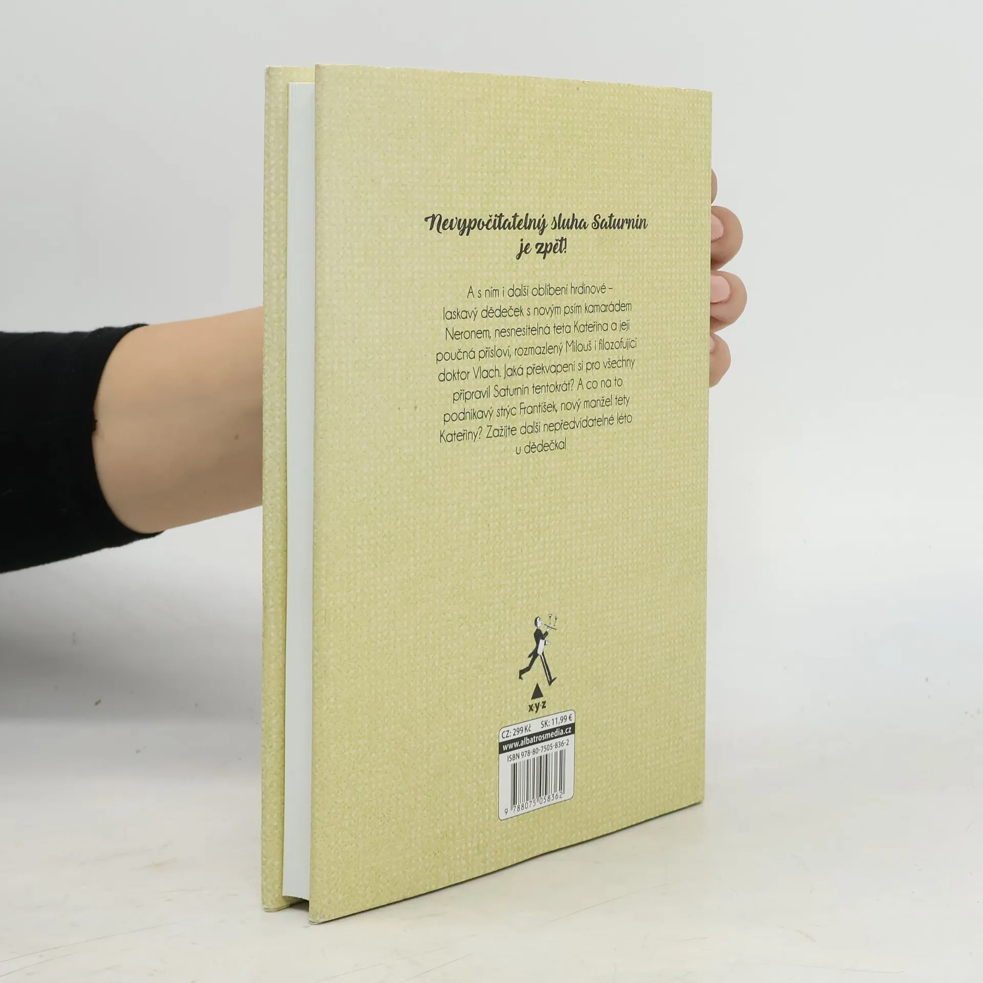 „Slavná humoristická kniha, která baví již několik generací čtenářů, pokračuje!“ Nevypočitatelný sluha Saturnin je zpět! A s ním i další oblíbení hrdinové – laskavý dědeček s novým psím kamarádem Neronem, nesnesitelná teta Kateřina a její poučná přísloví, rozmazlený Milouš i filozofující doktor Vlach. Jaká překvapení si pro všechny připravil Saturnin tentokrát? A co na to podnikavý strýc František, nový manžel tety Kateřiny? Zažijte další nepředvídatelné léto u dědečka!