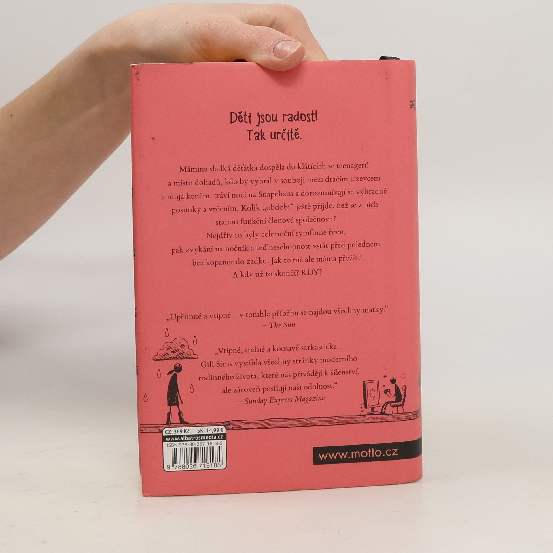 Mámina sladká děťátka dospěla do klátících se teenagerů a místo dohadů, kdo by vyhrál v souboji mezi dračím jezevcem a ninja koněm, tráví noci na Snapchatu a dorozumívají se výhradně posunky a vrčením. Kolik „období“ ještě přijde, než se z nich stanou funkční členové společnosti? Nejdřív to byly celonoční symfonie řevu, pak zvykání na nočník a teď neschopnost vstát před polednem bez kopance do zadku. Jak to má ale máma přežít? A kdy už to skončí? KDY?