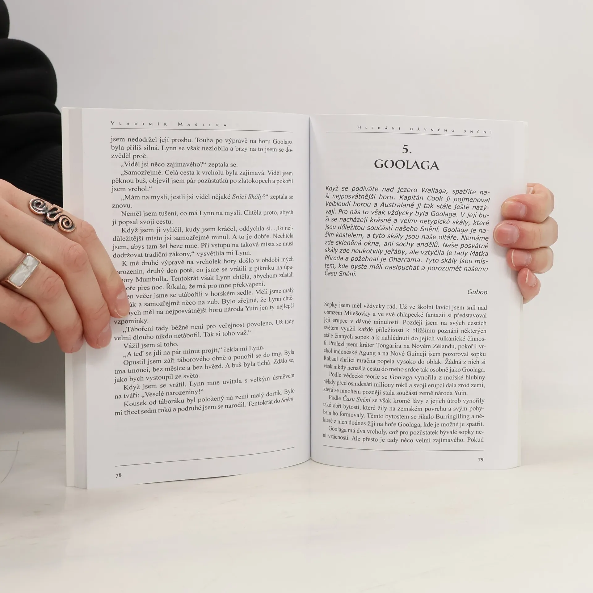 Pokud nesníš, tak nežiješ zdravě. Naše snění otevírá budoucnost vzpomínkou a spojením s dávnou minulostí. Snění přináší poznání našich dávných předků a sladění s matkou Zemí. Guboo, stařešina národa Yuin Tato kniha je vzpomínkou na Gubooa, posledního stařešinu a strážce poznání dávného národa Yuin, žijícího na jihovýchodním pobřeží Austrálie. V létě roku 1998, zatímco tábořil v buši s přáteli, Guboo onemocněl a byl odvezen do nemocnice Mnozí se domnívali, že se již nevrátí. V nemocnici měl však Guboo vidění. Jeho předkové mu oznámili, že se nejen uzdraví, ale že jeho následovníkem v roli kmenového stařešiny nebude jeho syn, jak se Guboo domníval, ale jeho dcera Lynn. O několik dní později se tato jeho dcera seznámila v buši s mladým Čechem, který byl mezi svými druhy znám jako Zany. Stali se přáteli a po několik následných let pod vedením Gubooa poznávali místa, která hrála po tisíce let důležitou roli v životě Aboriginců. Zatímco Lynn se vzdělávala a připravovala na roli budoucího „stařešiny“, Zany měl možnost nahlédnout do pradávné filozofie původních obyvatel Austrálie, které se říká všeobecně „Snění.“ Seznámil se s učením Duhového Hada Garinadgee, spal pod skalními převisy v kempech pradávných lovců a toulal se buší po jejich stezkách. Tato kniha je souhrnem jeho některých vzpomínek.
