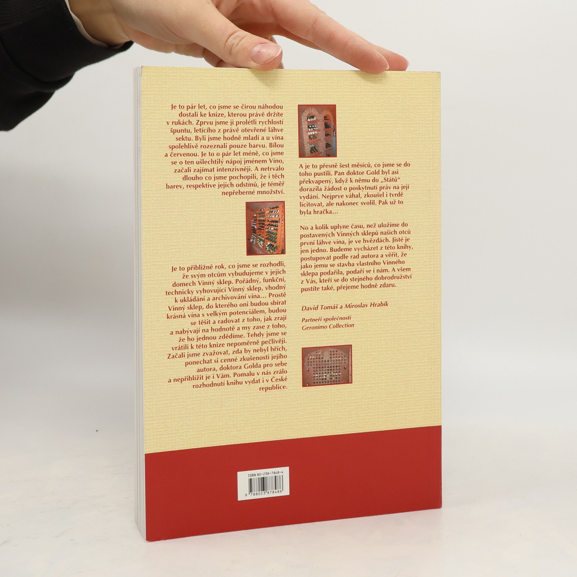 Kniha poskytuje mnoho užitečných informací, ze kterých se mohou poučit jak vinaři tak milovníci vína vlastnící svůj vlastní sklípek. První polovina knihy se zabývá převážně stavebními problémy. Druhá část knihy je věnovaná výběru a nákupu vína, otázkám jeho skladování, výběru pomůcek ke správnému podávání vína, vedení sklepní knihy, pořádání řízených degustací, vertikálních či horizontálních a řadě dalších užitečných rad začínajícím, či pokročilým milovníkům vína.... celý text
