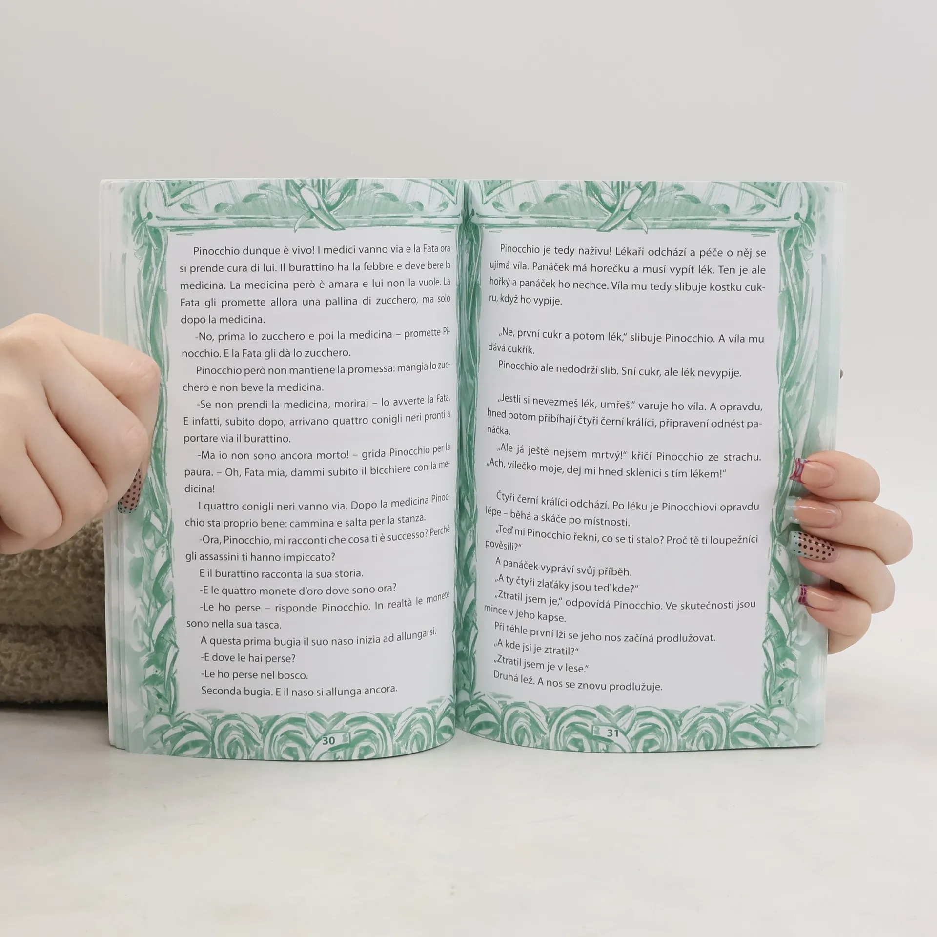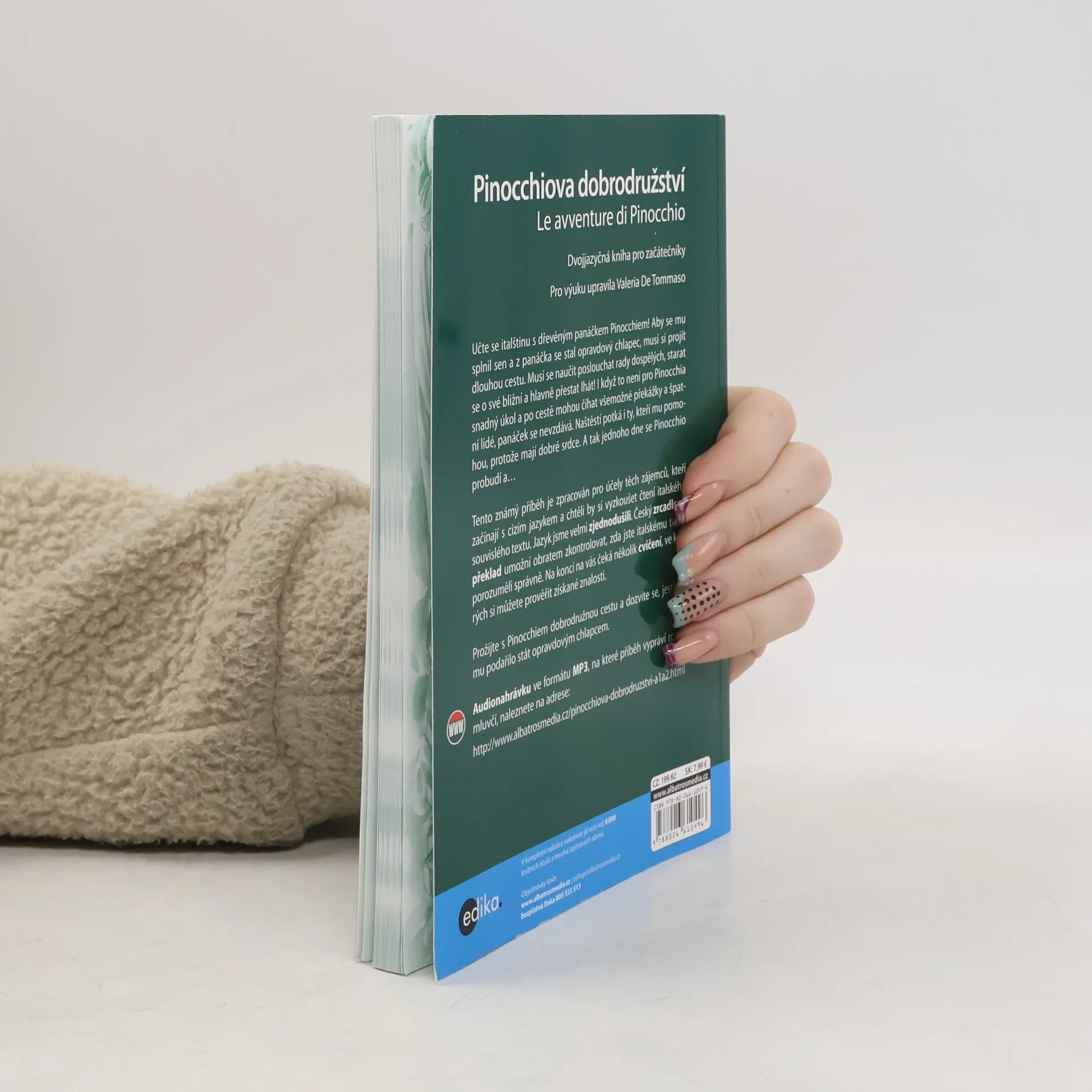 Učte se italštinu s dřevěným panáčkem Pinocchiem! Aby se mu splnil sen a z panáčka se stal opravdový chlapec, musí si projít dlouhou cestu. Musí se naučit poslouchat rady dospělých, starat se o své bližní a hlavně přestat lhát! I když to není pro Pinocchia snadný úkol a po cestě mohou číhat všemožné překážky a špatní lidé, panáček se nevzdává. Naštěstí potká i ty, kteří mu pomohou, protože mají dobré srdce. A tak jednoho dne se Pinocchio probudí a… Tento známý příběh je zpracován pro účely těch zájemců, kteří začínají s cizím jazykem a chtěli by si vyzkoušet čtení italského souvislého textu. Jazyk jsme velmi zjednodušili. Český zrcadlový překlad umožní obratem zkontrolovat, zda jste italskému textu porozuměli správně. Na konci na vás čeká několik cvičení, ve kterých si můžete prověřit získané znalosti. Prožijte s Pinocchiem dobrodružnou cestu a dozvíte se, jestli se mu podařilo stát opravdovým chlapcem. Audionahrávku ve formátu MP3, na které příběh vypráví rodilý mluvčí, naleznete v sekci Soubory ke stažení.