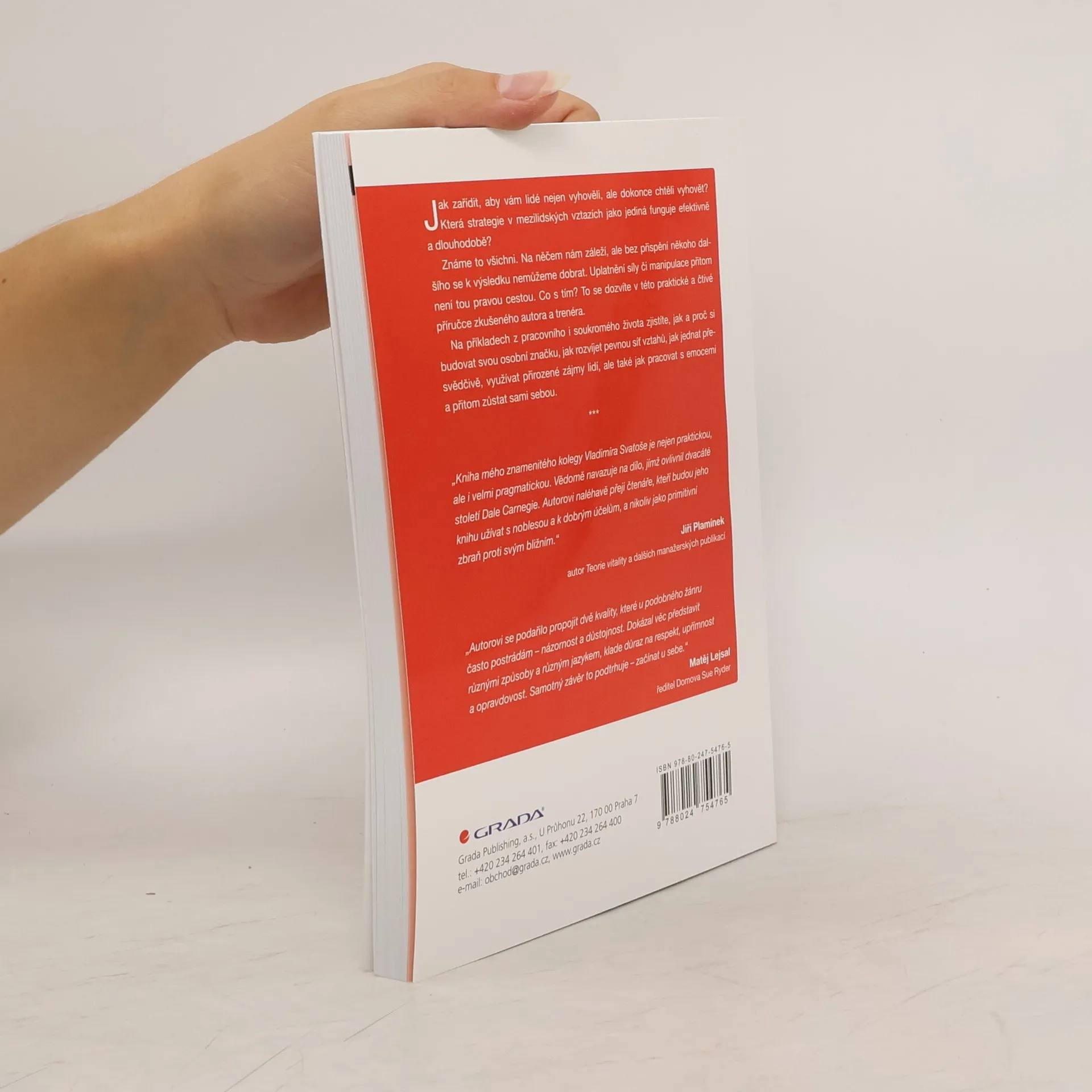 Jak zařídit, aby vám lidé nejen vyhověli, ale dokonce chtěli vyhovět? Která strategie v mezilidských vztazích jako jediná funguje efektivně a zároveň dlouhodobě? Známe to všichni. Na něčem nám záleží, ale bez přispění někoho dalšího se k výsledku nemůžeme dobrat. Uplatnění síly či manipulace přitom není tou pravou cestou. Co s tím? To se dozvíte v této praktické a čtivé příručce zkušeného autora a trenéra. Na příkladech z pracovního i soukromého života zjistíte, jak a proč si budovat svou osobní značku, jak rozvíjet pevnou síť vztahů, jak jednat přesvědčivě, využívat přirozené zájmy lidí, ale také jak pracovat s emocemi, citlivým způsobem poskytovat zpětnou vazbu a přitom zůstat sami sebou.