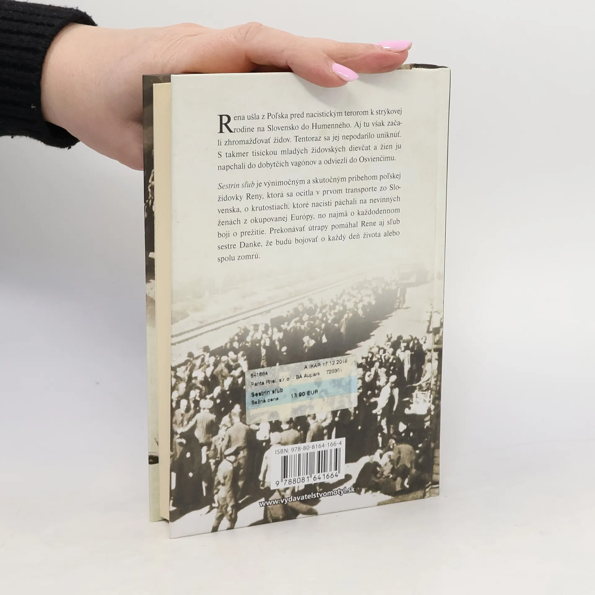 Príbeh dvoch sestier z Auschwitzu Silný memoár dvoch odvážnych sestier o odhodlaní prežiť hrôzy holokaustu. V marci 1942 Rena Kornreichová a 997 ďalších mladých žien prinútili nasadnúť do prvého ženského transportu smerujúceho do krutého tábora Auschwitz. Príbeh o láske a odvahe sa začína, keď sa mladá Rena krátko po príchode do tábora smrti stretáva so svojou sestrou Dankou a zisťuje, že miesto, na ktoré sa dostali, bude pravdepodobne ich konečnou stanicou. Tento pravdivý príbeh opisuje tri roky a štyridsať jeden dní neúprosného boja dvoch sestier, ktoré sa odmietli vzdať, a to cez pašovanie krajca chleba pre svojich priateľov po vyhýbanie sa hrozbám, ktoré dennodenne číhali na každom rohu. Dych berúce udalosti v tejto knihe nám pripomínajú, že ľudskosť a nádej môžu prekonať aj neopísateľnú brutalitu. Tetovanie už pravdepodobne vybledlo. No ja nepotrebujem pripomienku. Viem, čo som bola... Viezla som sa v prvom transporte do Auschwitzu. Bola som číslo 1716. Rena Kornreich Gelissen, január 1994.