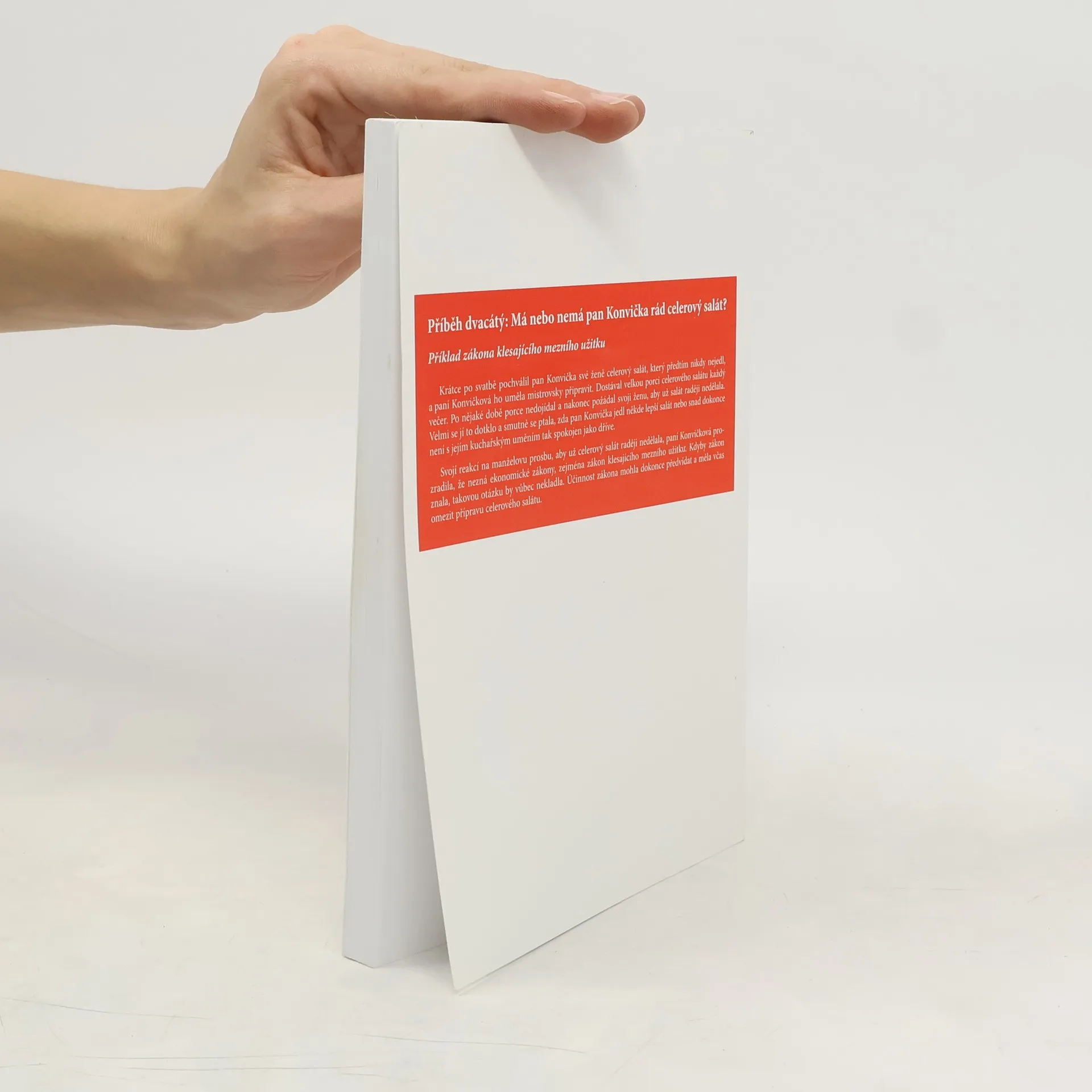 Ekonomie je věda o chování lidí, firem a vlád. Základními principy ekonomického myšlení jsou princip porovnání nákladů a prospěchu a princip rozhodování na základě mezních hodnot. Chování podle těchto principu se označuje jako racionální a znamená, že určitou činnost by měli jedinci, firmy i vlády vykonávat jen tehdy, když dodatečný prospěch z ní je větší nebo alespoň stejný jako dodatečné náklady na ni vynaložené. Náklady musí zahrnovat též cenu příležitosti. Kniha vysvětluje chování spotřebitelů a výrobců pomocí příběhů, které uvedou čtenáře do problematiky srozumitelným a laskavým způsobem.