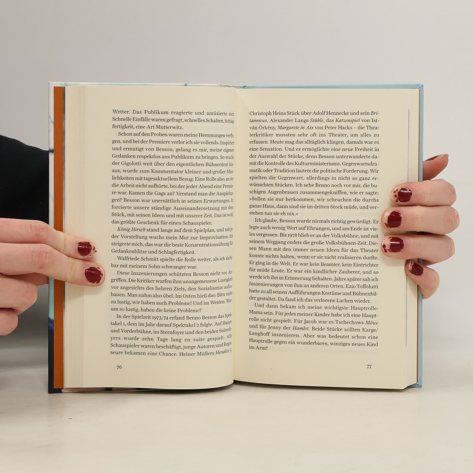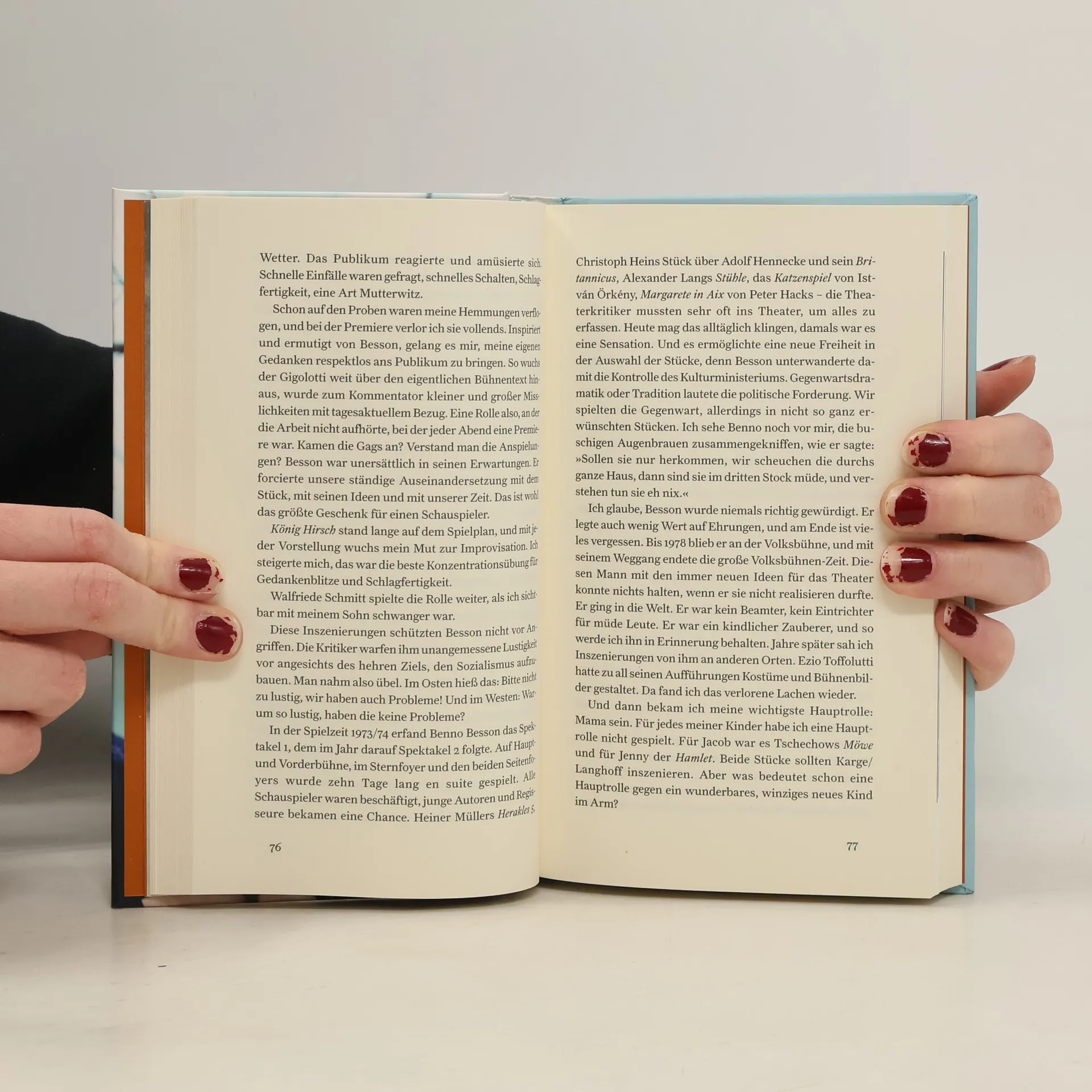 Blonder Strubbelkopf, aus den Augen blickt der Schalk, Lebensspuren im hellwachen, klugen Gesicht. Von dieser Frau lässt man sich gern etwas erzählen über das Leben und über die Kunst, der sie sich mit Haut und Haar verschrieben hat. Als Elfjährige wurde sie fürs Fernsehen entdeckt, trat in der Kinderkabarettgruppe auf, bekam erste Filmrollen. Mit der Gage brachte sie den Familienhaushalt auf Vordermann und nahm auch sonst die Zügel in die Hand. Noch vor Beendigung der Schule wurde sie als jüngste Studentin an die Film- und Fernsehhochschule Potsdam aufgenommen. »In der DDR war sie ein Star«, schrieb »Die Zeit«. Wer sie als Grusche, als Shen Te, als Eva im »Puntila«, wer sie in den großen Besson-, Marquardt- und Langhoff-Inszenierungen erlebt hat, widerspricht da nicht. Aber ein Star? Nebbich. Es geht um Schauspielkunst, um eine einzigartige Wandlungsfähigkeit, um Präzision und Disziplin und Wortgenauigkeit, die das Spiel der Antoni auf der Bühne und noch in der kleinsten Filmnebenrolle unverwechselbar und unvergesslich machen.