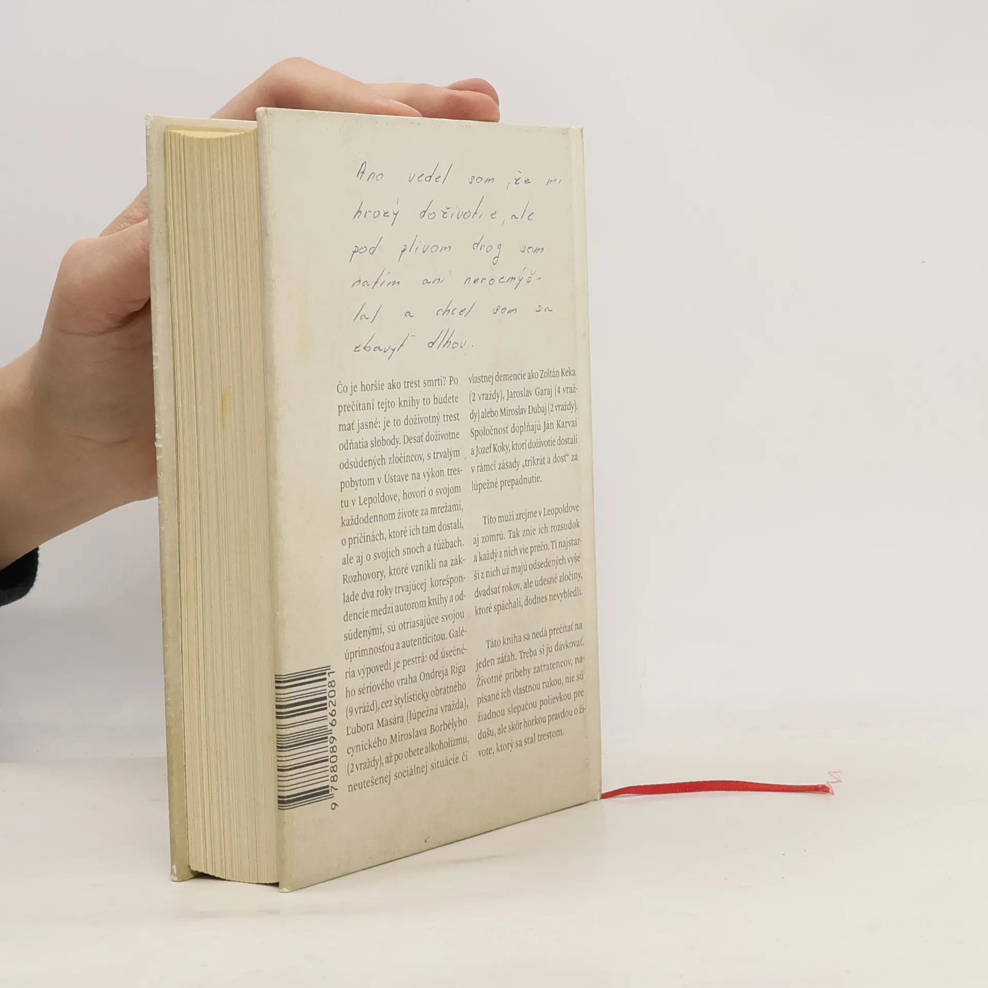 Čo je horšie ako trest smrti? Po prečítaní tejto knihy to budete mať jasné: je to doživotný trest odňatia slobody. Desať doživotne odsúdených zločincov, s trvalým pobytom v Ústave na výkon trestu v Lepoldove, hovorí o svojom každodennom živote za mrežami, o príčinách, ktoré ich tam dostali, ale aj o svojich snoch a túžbach. Rozhovory, ktoré vznikli na základe dva roky trvajúcej korešpondencie medzi autorom knihy a odsúdenými, sú otriasajúce svojou úprimnosťou a autenticitou. Galéria výpovedí je pestrá: od úsečného sériového vraha Ondreja Riga (9 vrážd), cez štylisticky obratného Ľubora Masára (lúpežná vražda), cynického Miroslava Borbélyho (2 vraždy), až po obete alkoholizmu, neutešenej sociálnej situácie či vlastnej demencie ako Zoltán Keka (2 vraždy), Jaroslav Garaj (4 vraždy) alebo Miroslav Dubaj (2 vraždy). Spoločnosť dopĺňajú Ján Karvai a Jozef Koky, ktorí doživotie dostali v rámci zásady Trikrát a dosť za lúpežné prepadnutie. Títo muži zrejme v Leopoldove aj zomrú. Tak znie ich rozsudok a každý z nich vie prečo. Tí najstarší z nich už majú odsedených vyše dvadsať rokov, ale údesné zločiny, ktoré spáchali, dodnes nevybledli. Táto kniha sa nedá prečítať na jeden záťah. Treba si ju dávkovať. Životné príbehy zatratencov, napísané ich vlastnou rukou, nie sú žiadnou slepačou polievkou pre dušu, ale skôr horkou pravdou o živote, ktorý sa stal trestom.