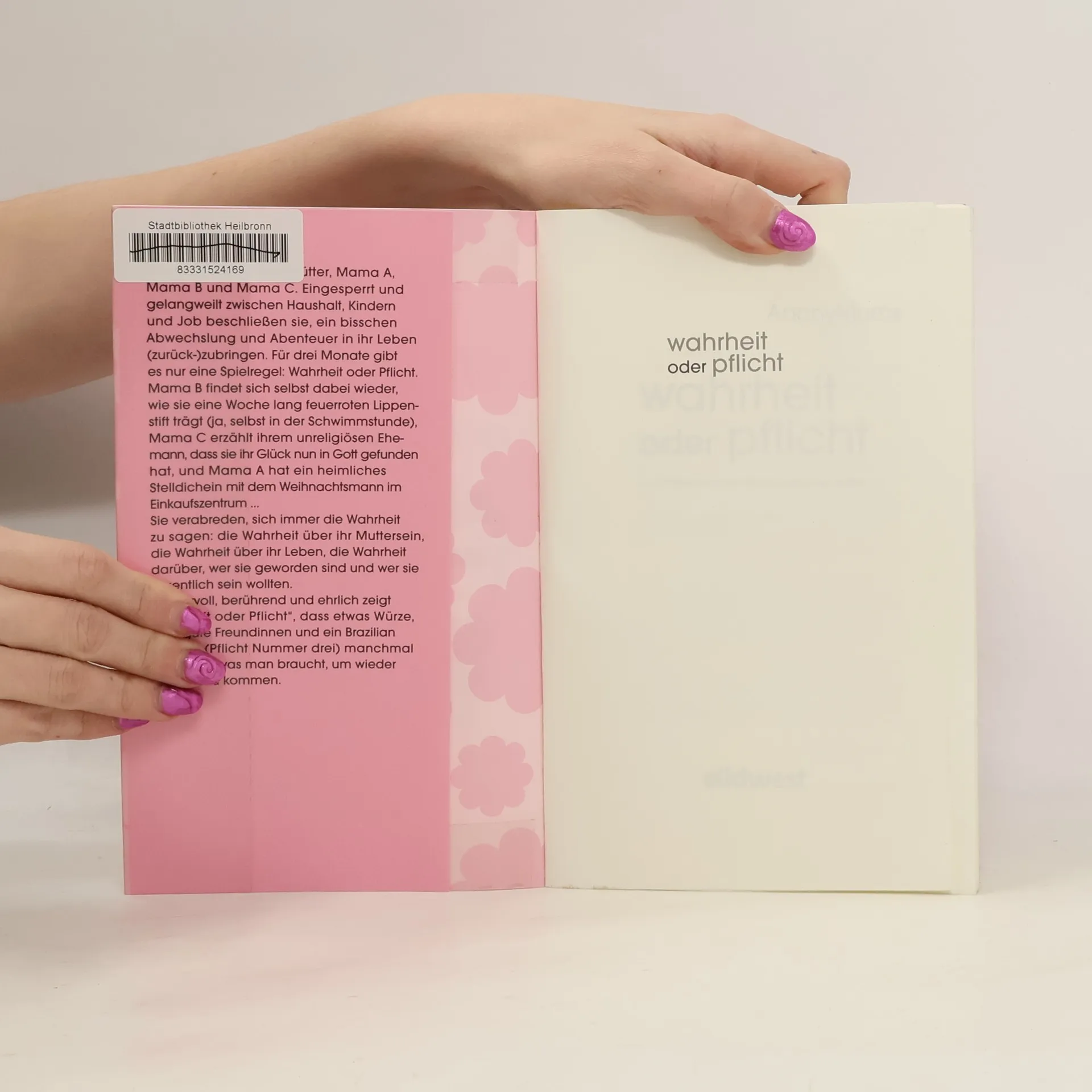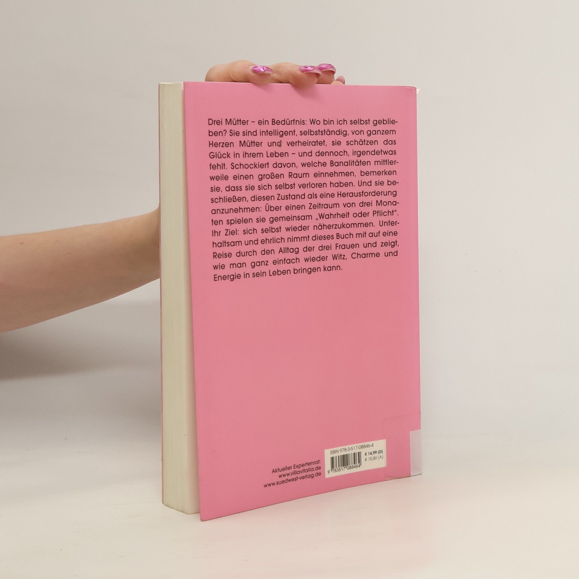 Drei Mütter – ein Bedürfnis Wo bin ich selbst geblieben? Sie sind intelligent, selbstständig, von Herzen Mütter und verheiratet, sie schätzen das Glück in ihrem Leben – und dennoch – irgendetwas fehlt: Schockiert davon, welche Banalitäten mittlerweile einen großen Raum einnehmen, bemerken sie, dass sie sich selbst verloren haben. Und sie beschließen, diesen Zustand als eine Herausforderung anzunehmen: Über einen Zeitraum von drei Monaten spielen sie gemeinsam „Wahrheit oder Pflicht“. Ihr Ziel: sich selbst wieder näher zu kommen. Unterhaltsam und ehrlich nimmt das Buch mit auf eine Reise durch den Alltag der drei Frauen und zeigt, wie man mithilfe eines Kinderspiels wieder Witz, Charme und Energie in sein Leben bringen kann.
