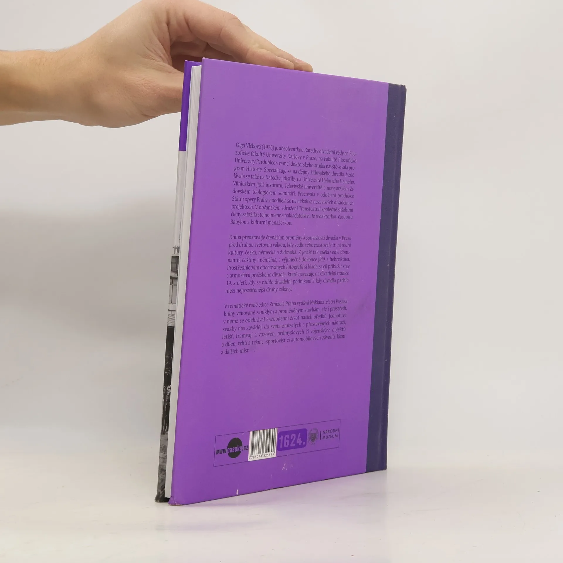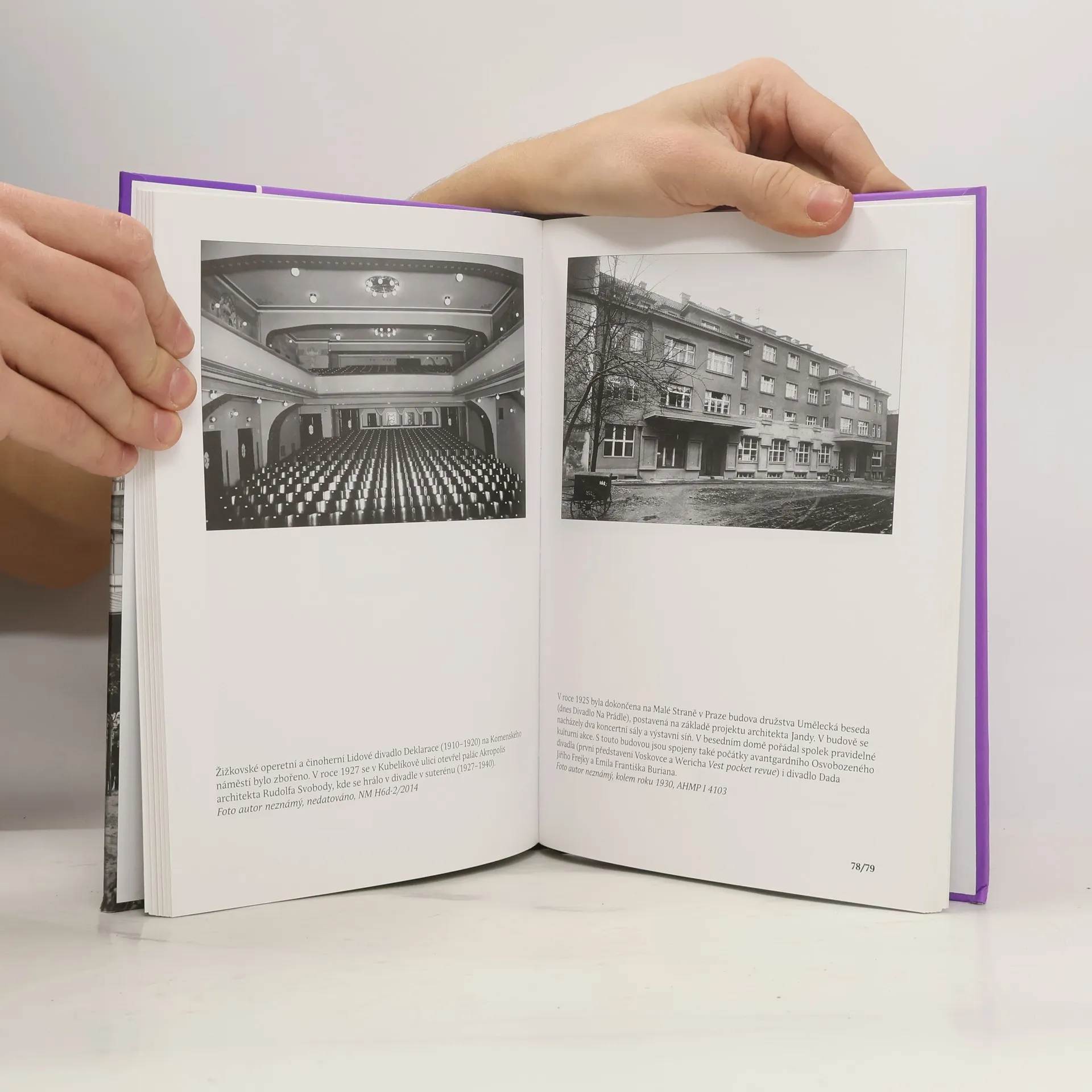 Kniha představuje čtenářům proměny a souvislosti divadla v Praze před druhou světovou válkou, kdy vedle sebe existovaly tři národní kultury, česká, německá a židovská. Z jevišť tak zněla vedle dominantní češtiny i němčina, a výjimečně dokonce jidiš a hebrejština. Prostřednictvím dochovaných fotografií si klade za cíl přiblížit stav a atmosféru pražského divadla, které navazuje na divadelní tradice 19. století, kdy se rodilo divadelní podnikání a kdy divadlo patřilo mezi nejrozšířenější druhy zábavy.