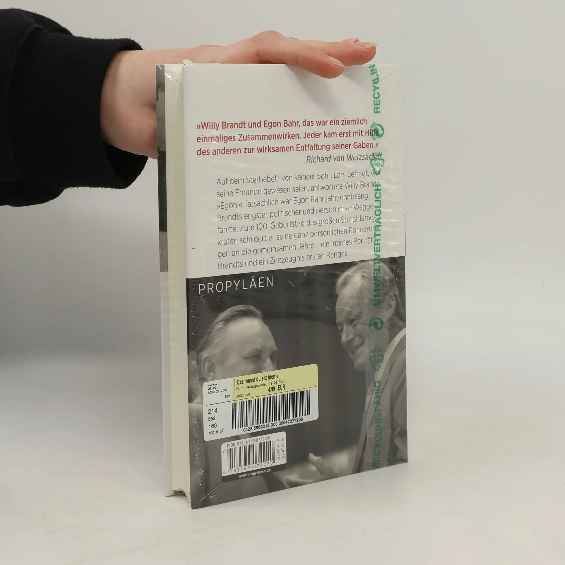 Auf dem Sterbebett von seinem Sohn Lars gefragt, wer seine Freunde gewesen seien, antwortete Willy Brandt: „Egon.“ Tatsächlich war Egon Bahr jahrzehntelang Brandts engster politischer und persönlicher Weggefährte. Zum 100. Geburtstag des großen Sozialdemokraten schildert er erstmals seine ganz persönlichen Erinnerungen an Willy Brandt und die gemeinsamen Jahre. Das Ergebnis ist ein ungewöhnlich intimes Porträt Brandts und ein Zeitzeugnis ersten Ranges. Kennengelernt haben sie sich Ende der fünfziger Jahre. Als Regierender Bürgermeister von Berlin machte Brandt den RIAS-Journalisten Bahr zum Senatssprecher. Nach dem Mauerbau entwarfen sie gemeinsam jene Ostpolitik, die bis heute als die große Leistung der Kanzlerschaft Brandts gilt. Als engster Vertrauter folgte Bahr Willy Brandt ins Auswärtige Amt und dann ins Kanzleramt. In Brandts Auftrag verhandelte er die Ostverträge und war im Triumph des gescheiterten Misstrauensvotums wie in der bittersten Stunde des Rücktritts an seiner Seite. Aber auch jenseits der Politik waren sie Vertraute und Freunde. Bahr schöpft aus einer Fülle unbekannter Anekdoten, die er glänzend erzählt und die uns Willy Brandt menschlich nahe bringen.