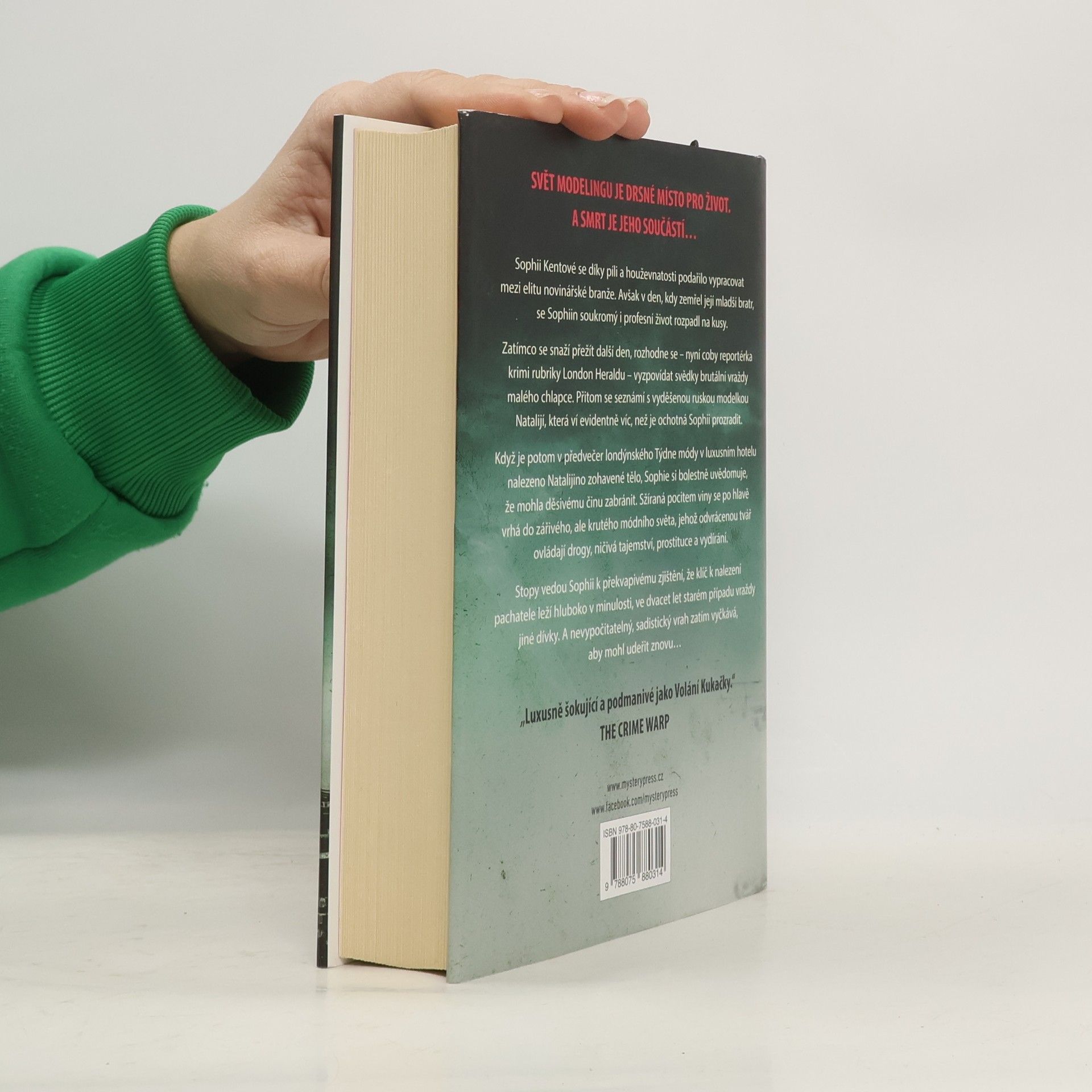 Sophii Kentové se díky píli a houževnatosti podařilo vypracovat mezi elitu novinářské branže. Avšak v den, kdy zemřel její mladší bratr, se Sophiin soukromý i profesní život rozpadl na kusy. Zatímco se snaží přežít další den, rozhodne se – nyní coby reportérka krimi rubriky London Heraldu – vyzpovídat svědky brutální vraždy malého chlapce. Přitom se seznámí s vyděšenou ruskou modelkou Natalijí, která ví evidentně víc, než je ochotná Sophii prozradit. Když je potom v předvečer londýnského Týdne módy v luxusním hotelu nalezeno Natalijino zohavené tělo, Sophie si bolestně uvědomuje, že mohla děsivému činu zabránit. Sžíraná pocitem viny se po hlavě vrhá do zářivého, ale krutého módního světa, jehož odvrácenou tvář ovládají drogy, ničivá tajemství, prostituce a vydírání. Stopy vedou Sophii k překvapivému zjištění, že klíč k nalezení pachatele leží hluboko v minulosti, ve dvacet let starém případu vraždy jiné dívky. A nevypočitatelný, sadistický vrah zatím vyčkává, aby mohl udeřit znovu…