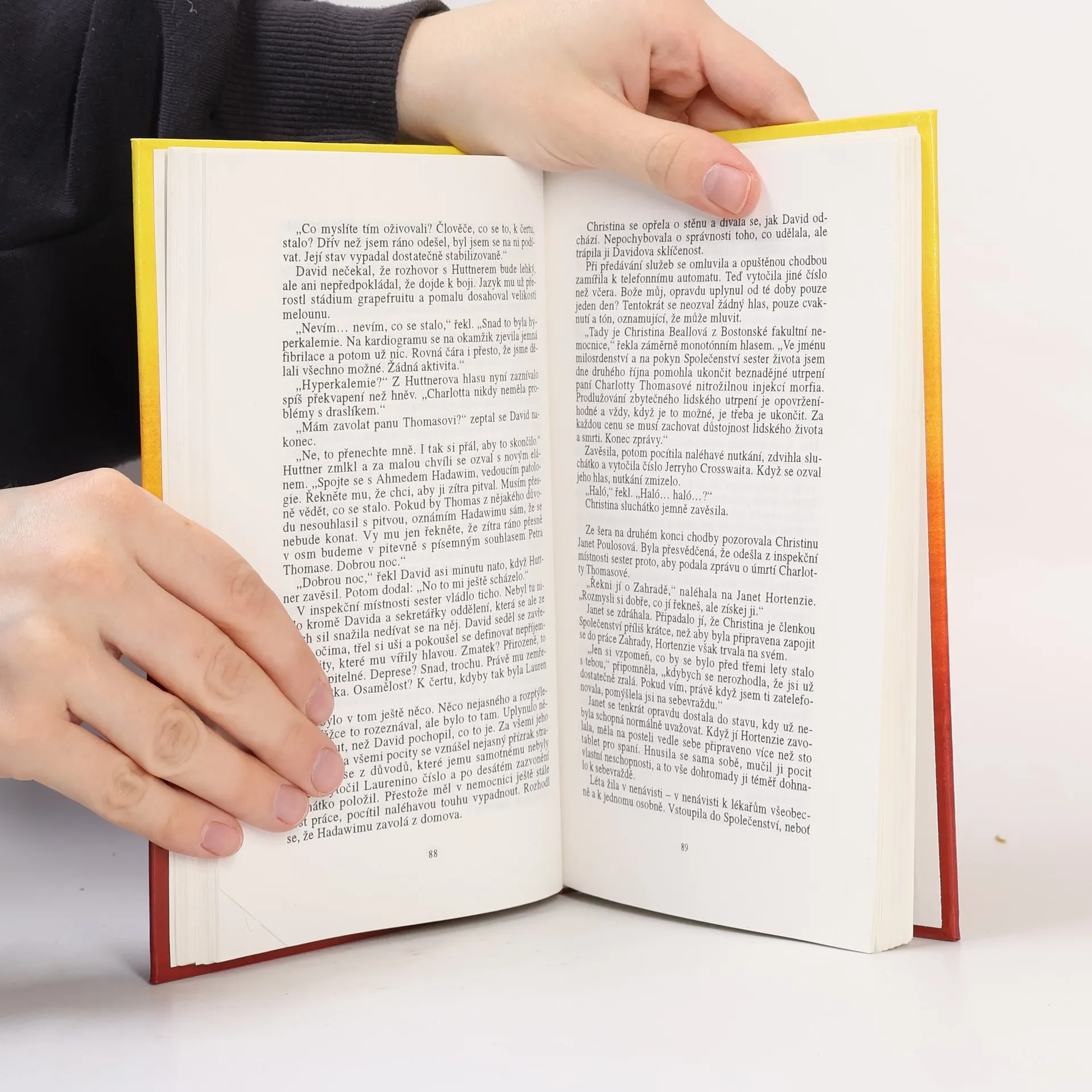 Napínavý příběh mladého ctižádostivého lékaře DAvida Sheltona. Právě v okamžiku, kdy se po těžkých životních zkouškách pomalu vrací zpět mezi renomované odborníky Bostnoské fakultní nemocnice, se setkává s činností organizace Společenství sester života. Tento tajný spolek se povýšil na dozorce nad etikou umírání a přisvojil si právo rozhodovat o případných eutanaziích. Skryta pod zástěrkou humanistické ideje o skončení utrpení nevyléčitelně nemocných část členek této organizace neváhá vraždit pro peníze a pocit vlastní moci. Okamžik střetu se Společenstvím sester života se stává dr. Sheltonovi osudným. Opět se dostává do spletité situace, v níž musí bojovat nejen o svoji kariéru, ale dokonce i o život svůj a svých přátel. Vzrušující zápletce dodává na autentičnosti množství medicínských detailů i fakt, že román je napsán autorem, dokonale obeznámeným s lékařským prostředím.
