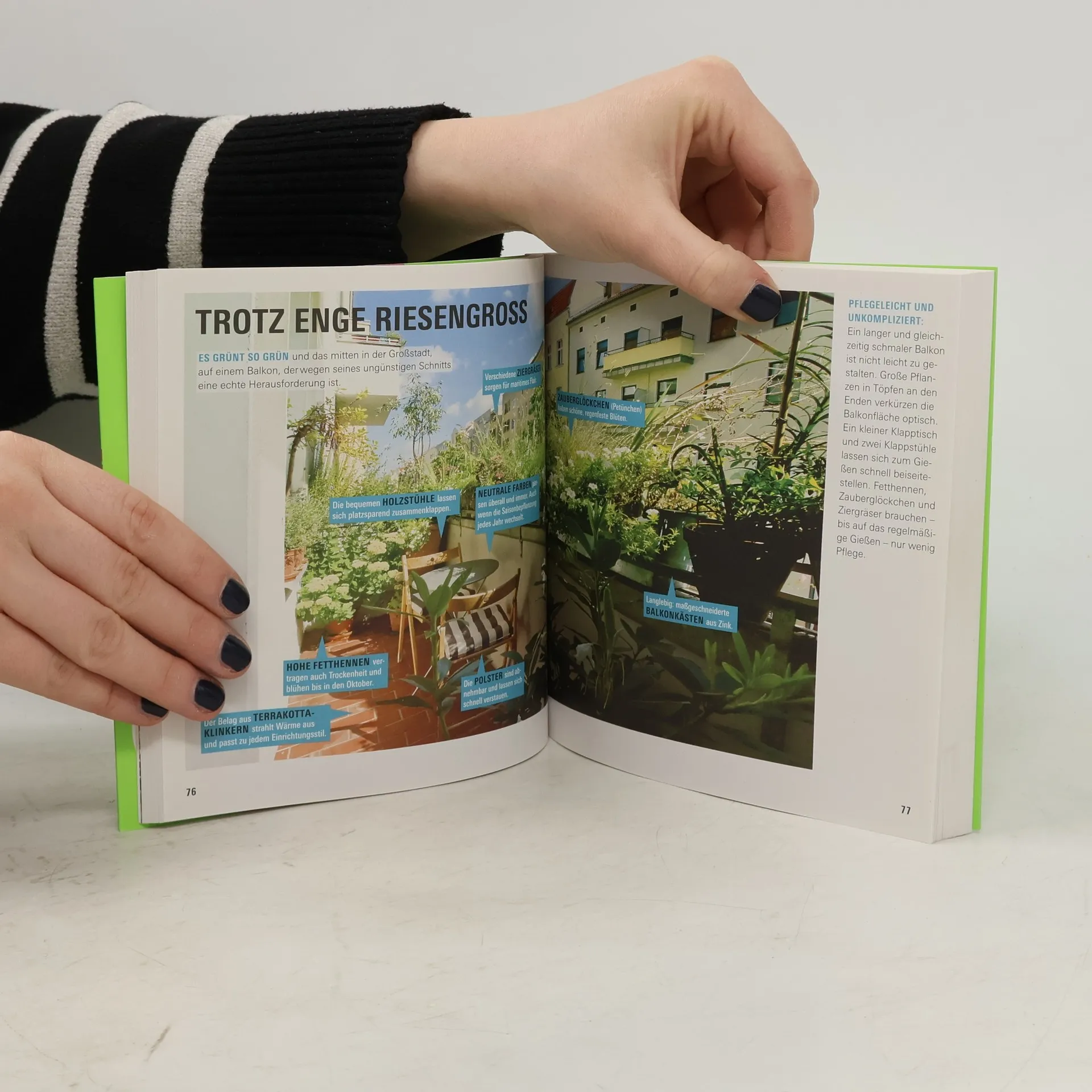 Für beliebte Balkonpflanzen gibt es oft schönere, pflegeleichtere oder einfach originellere Alternativen: beispielsweise windfeste Hornveilchen statt Stiefmütterchen mit zu schweren Blüten. Balkon soll vor allem Spaß machen: Die Ideen und Anregungen des Ratgebers der Stiftung Warentest sind unkompliziert, überraschend und für jeden umsetzbar. Auf Pro-Contra-Doppelseiten steht links, was nicht geht, rechts, wie man es einfach besser macht. Viele Pflanzen-Hitlisten, übersichtliche Schaubilder, überraschende Empfehlungen und praxiserprobte Tipps für das ganze Balkonjahr. Dazu alles über Planung, Windschutz, Krankheiten, Möbel, Deko, Werkzeuge und mehr als 100 Pflanzen für alle Fälle und wirklich alles, was Balkon- und Terrassengärtner(innen) unbedingt wissen müssen.
