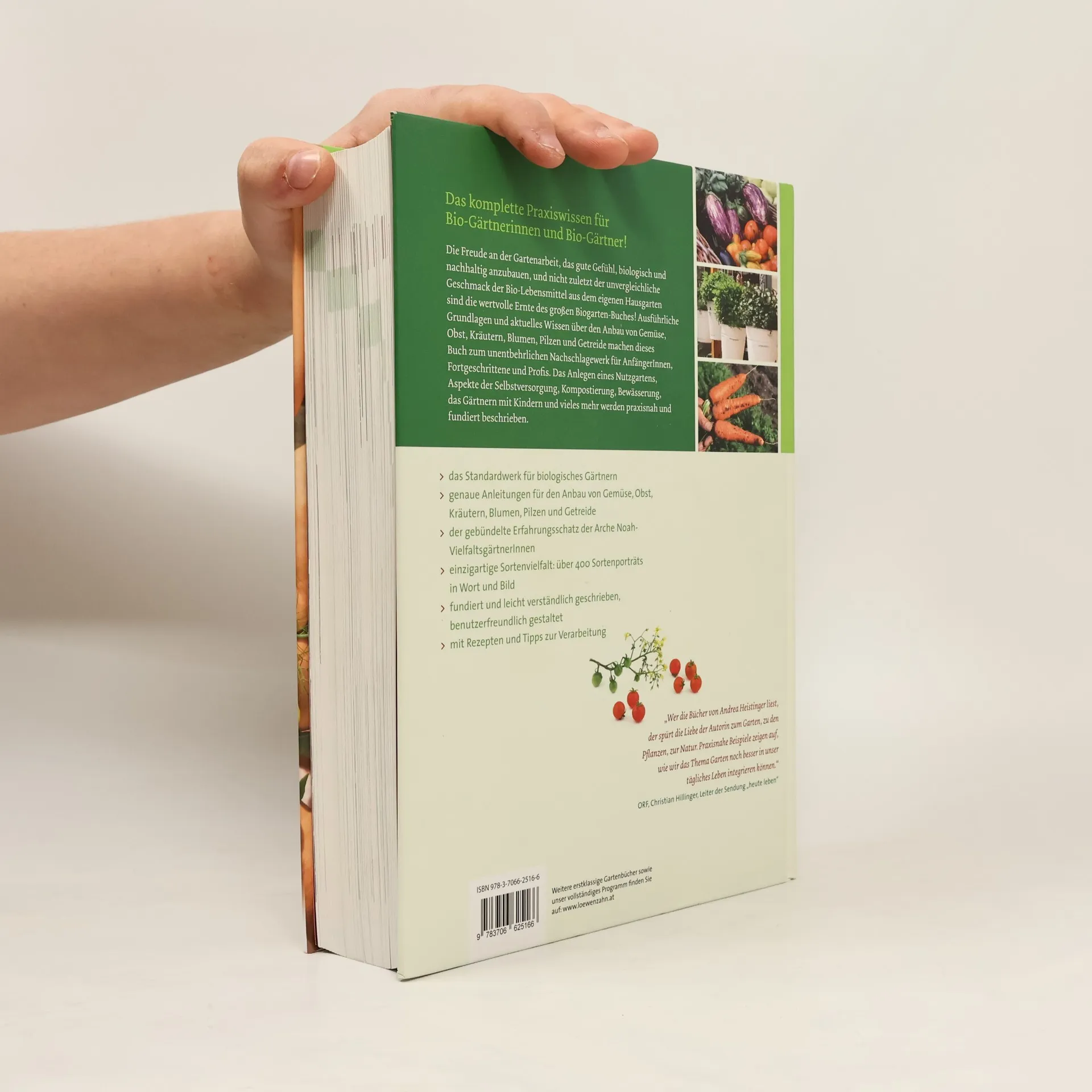 Das komplette Praxiswissen für Bio-Gärtnerinnen und -Gärtner: • das Buch der Gartenexpertin und Bestsellerautorin Andrea Heistinger • deckt umfassend und aktuell das ganze Wissen rund ums Bio-Gärtnern ab • das unentbehrliche Standardwerk für Anfänger, Fortgeschrittene und Profis • leicht verständlich und benutzerfreundlich • der gebündelte Erfahrungsschatz der Arche Noah-VielfaltsgärtnerInnen • für den Anbau von Gemüse, Obst, Kräutern, Blumen, Pilzen und Getreide • einzigartige Sortenvielfalt: über 400 Sortenporträts in Wort und Bild • viele stimmungsvolle Gartenfotos und anschauliche Zeichnungen