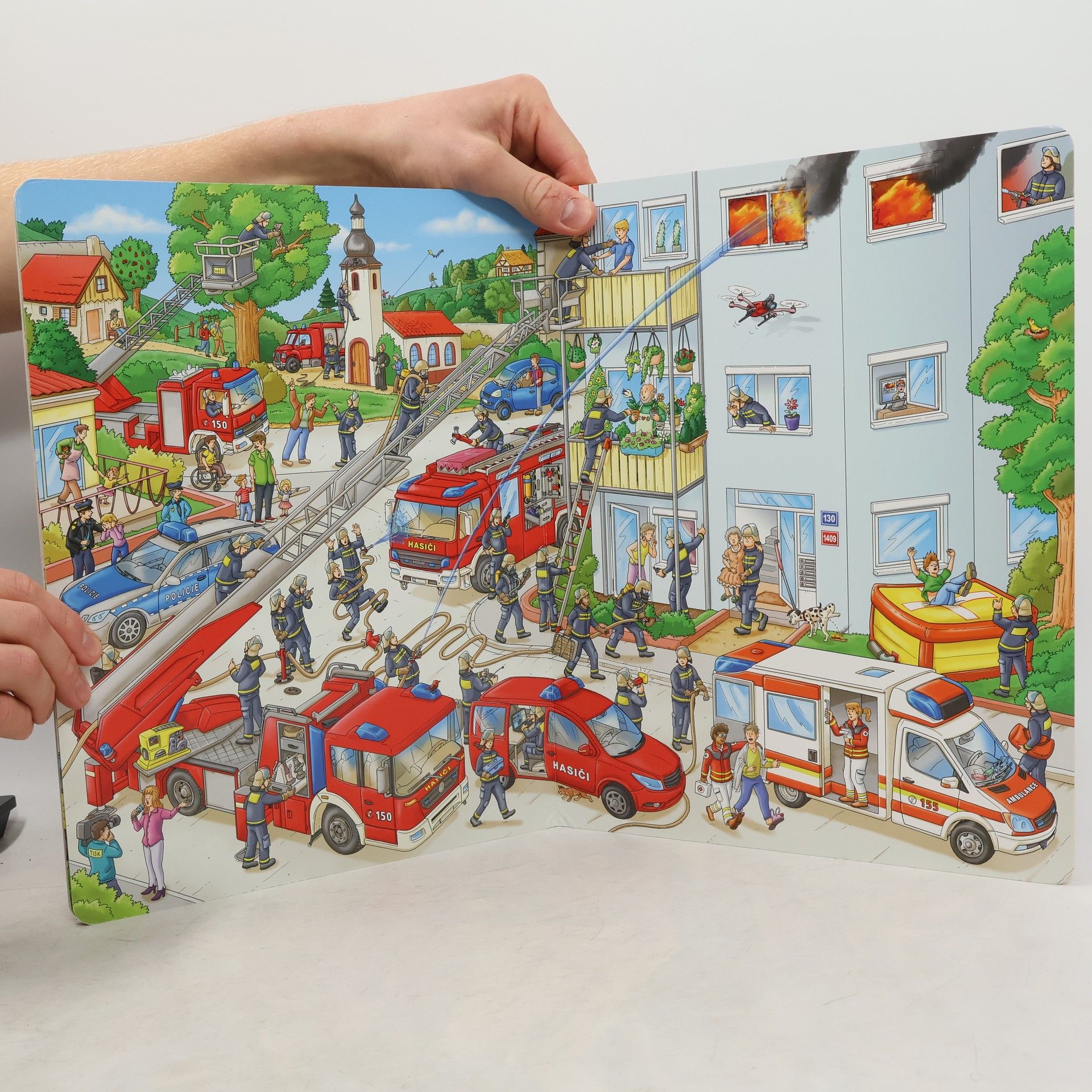 Detailní ilustrace v další z řady velkých obrázkových knih seznámí malé čtenáře s rozmanitou prací hasiče i s každodenním životem na stanici. Stačí se jen ponořit do barevného světa obrázků a pozorně sledovat.
