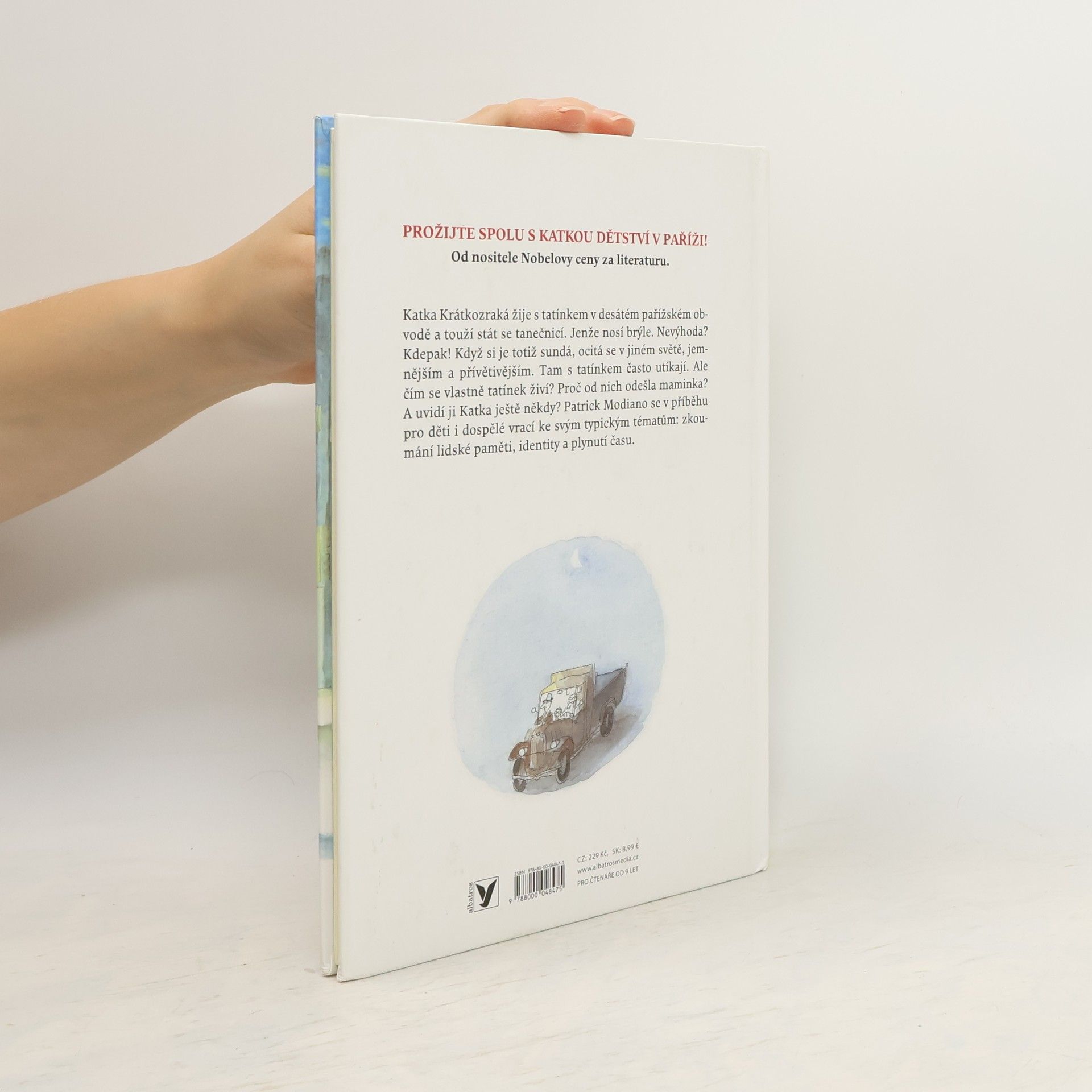 Katka Krátkozraká žije s tatínkem v desátém pařížském obvodě a touží stát se tanečnicí. Jenže nosí brýle. Nevýhoda? Kdepak! Když si je totiž sundá, ocitá se v jiném světě, jemnějším a přívětivějším. Tam s tatínkem často utíkají. Ale čím se vlastně tatínek živí? Proč od nich odešla maminka? A uvidí ji Katka ještě někdy? Patrick Modiano se v příběhu pro děti i dospělé vrací ke svým typickým tématům: zkoumání lidské paměti, identity a plynutí času.
