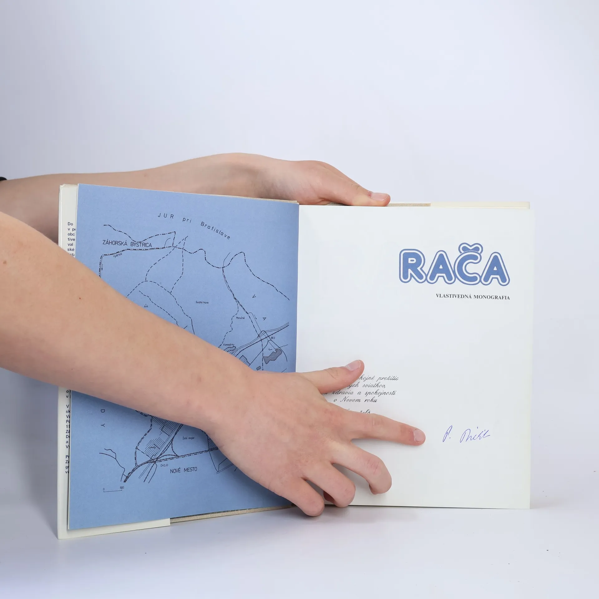 Preslávená vinohradnícka obec Rača je od 1. apríla 1946 súčasťou Bratislavy a od roku 1971 súčasťou tretieho bratislavského obvodu. Bývalé mestečko sa postupne rozrástlo, vybudovali sa pri ňom typické obytné štvrte-sídliská Experimentálka, Barónka, Komisárky a Záhumenice. Okolo starého jadra s typickými črtami vinohradníckeho mestečka nadväzujúceho zo severozápadu pásmom vinohradov na malokarpatský horský masív vznikol nový sídelný celok. Kapitoly: Krajina Rače, Dejiny-Vývoj do roku 1945, Obdobie socializmu, Jednotné roľnícke družstvo, Sídelný a demografický vývoj, Tradičná kultúra-Vinohradníctvo a ovocinárstvo, Domáca výroba a remeslá, Strava, Staviteľstvo a bývanie, Odev, Život a obyčaje v rodine, Spoločenský život, Výročné obyčaje, Ľudové rozprávanie, Hudobná kultúra. Nárečie. Prvé vydanie. Cena knihy v čase vydania: 70.- Kčs.
