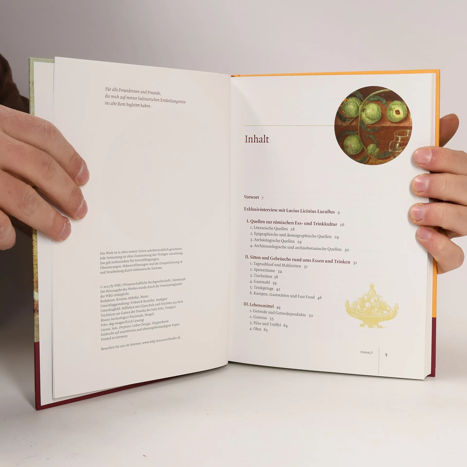 Die römische Küche, anfangs eher bodenständig und bäuerlich einfach, wurde seit dem 3. Jahrhundert v. Chr. von der griechischen Kultur beeinflusst und mit der territorialen Ausweitung der Republik immer reichhaltiger und raffinierter. In der Blütezeit des Imperium Romanum war die Küche der reichen Römer vielfältig und aufs höchste verfeinert. Bei aufwendigen und teuren Gastmählern wurden kulinarische Spezialitäten aus dem gesamten Mittelmeerraum zelebriert. Brigitte Cech gibt einen Einblick in alle Aspekte der römischen Kochkultur. Sie beschreibt die Speisenfolge und die Begleitumstände eines Gastmahles und nennt die Zutaten, von denen es viele so nicht mehr gibt, während die Römer uns heute geläufige Zutaten - etwa Tomaten oder Kartoffeln - noch nicht kannten. Dabei räumt sie mit gängigen Klischees und Vorurteilen auf und bietet schließlich 45 Rezepte aus den übersetzten Originalquellen mit Erklärungen und detaillierten Angaben zu den Zutaten