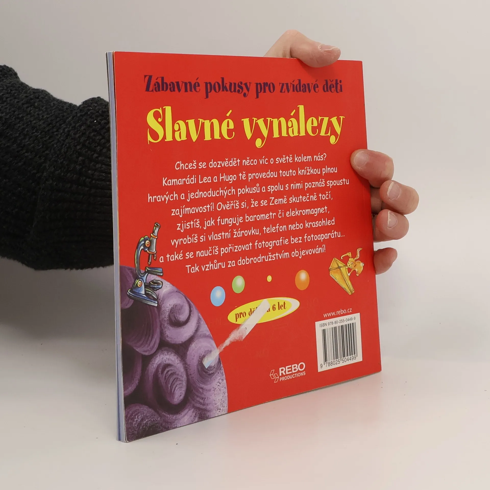 Knížka Slavné vynálezy obsahuje téměř dvě desítky zajímavých pokusů, při kterých se děti pobaví a zároveň poučí. Seznámí se s několika významnými vynálezy a objevy lidstva. Prostřednictvím jednoduchých pokusů, které jsou v knížce názorně popsány krok za krokem, si malí badatelé mohou ověřit, že se Země skutečně točí, zjistí, jak funguje barometr či elekromagnet, mohou si vyrobit vlastní žárovku, telefon nebo krasohled a také se naučí pořizovat fotografie bez fotoaparátu.