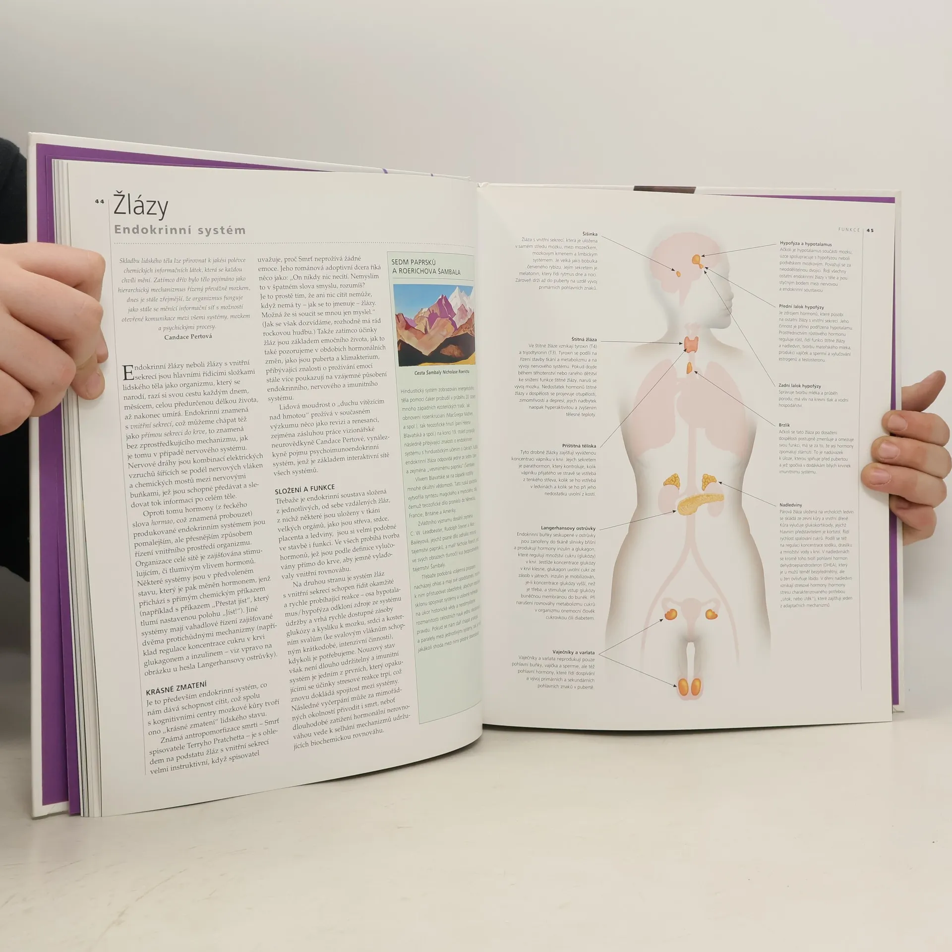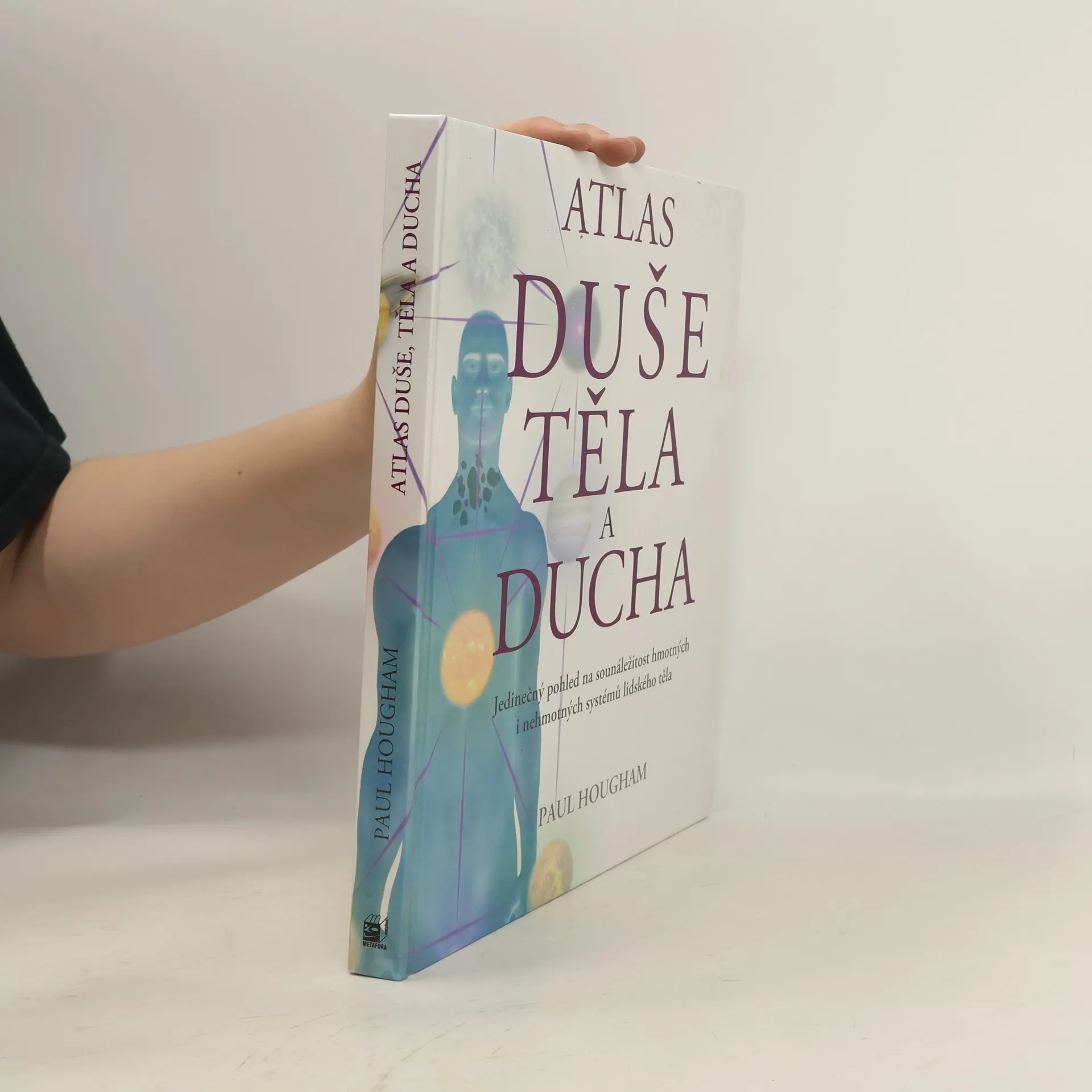 Kniha Atlas duše, těla a ducha se snaží čtenáře seznámit s rozličným pojetím lidského těla, duše a ducha podle toho, jak je vidí několik odlišných kultur. Začínáme západním, ortodoxním pohledem na anatomii a fyziologii. Zde se věnujeme tělu, od kostry až po imunitní systém a s pomocí skvělých ilustrací jsou srozumitelně vysvětleny všechny jeho funkce. Poté se podíváme na metody sledování a zlepšování tělesného a duševního zdraví, jako jsou osteopatie, akupunktura, iridologie, reflexologie a nakonec se seznámíme s holistickými teoriemi o spojení člověka s vesmírem... Z těchto teoretických základů pak autor vychází při popisu nejrůznějších pohledů na tělo pocházejících z různých starobylých nauk včetně indického systému čaker, čínského systému meridiánů, stromu života kabaly nebo víry západoafrických šamanů. ([jedinečný pohled na sounáležitost hmotných i nehmotných systémů lidského těla])