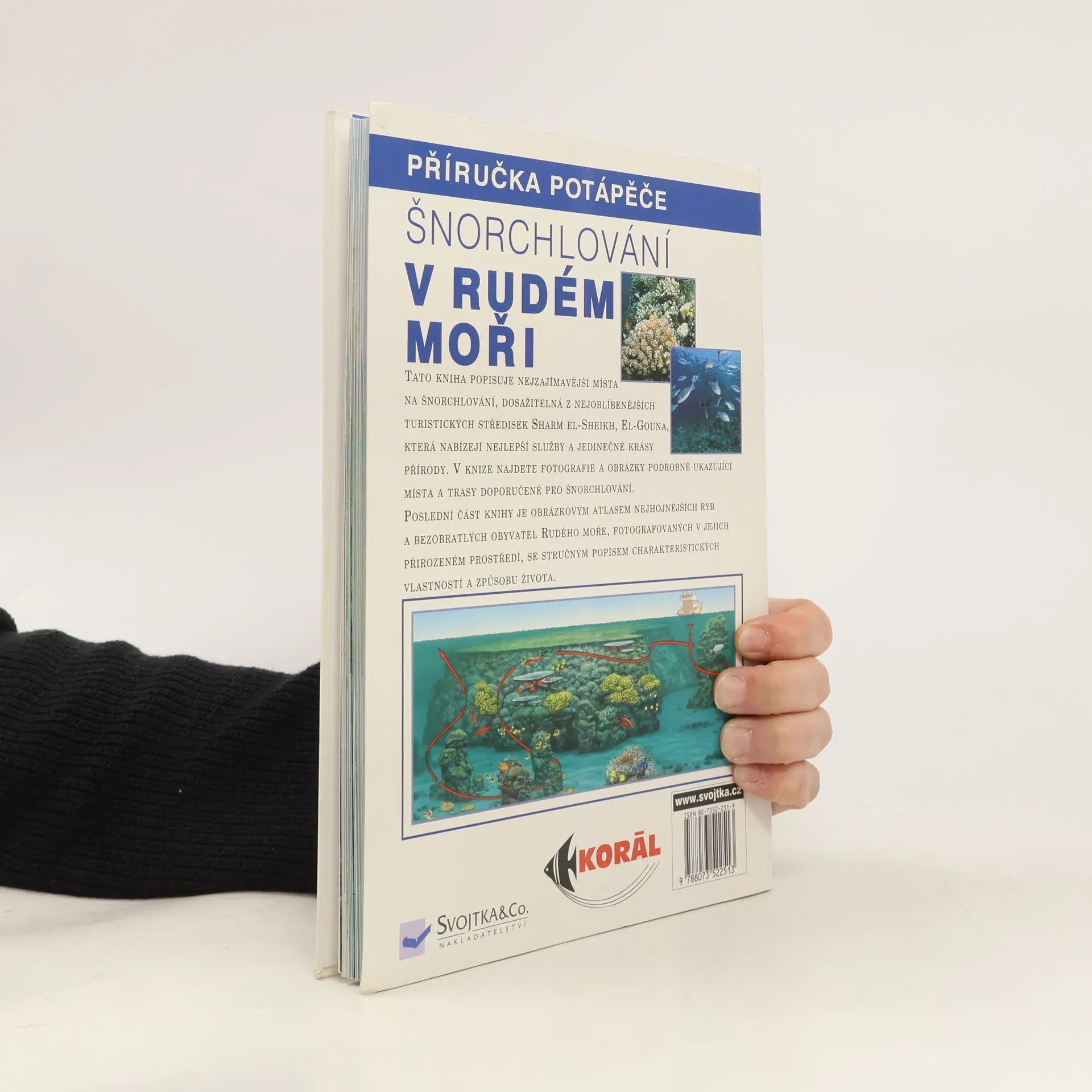 Tato kniha popisuje nejzajímavější místa na šnorchlování, dosažitelná z nejoblíbenějšéch turistických středisek Sharm El-Sheikh, El-Gouna, která nabízejí nejlepší služby a jedinečné krásy přírody. V knize najdete fotografie a obrázky podrobně ukazující místa a trasy doporučené pro šnorchlování. Poslední část knihy je obrázkovým atlasem nejhojnějších ryb a bezobratlých obyvatel Rudého moře, fotografovaných v jejich přirozeném prostředí, se stručným popisem charakteristických vlastností.