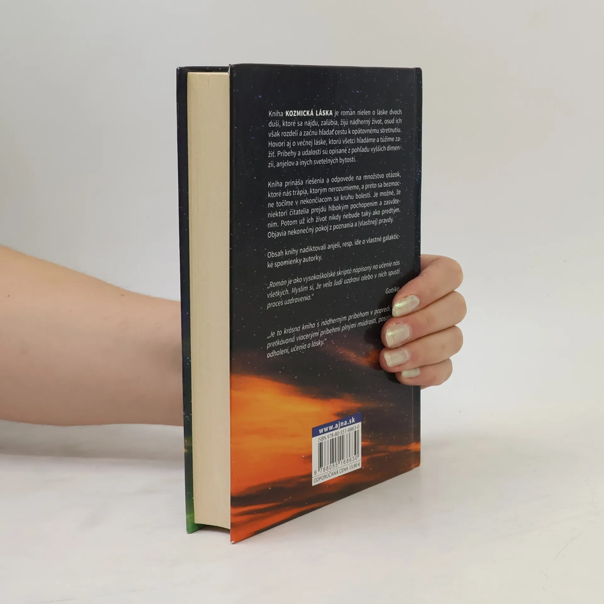 Kniha Kozmická láska je román nielen o láske dvoch duší, ktoré sa nájdu, zaľúbia, žijú nádherný život, osud ich však rozdelí a začnú hľadať cestu k opätovnému strenutiu. Hovorí aj o večnej láske, ktorú všetci hľadáme a túžime zažiť. Príbehy a udalosti sú opísané z pohľadu vyšších dimenzií, anjelov a iných svetelných bytostí. Kniha prináša riešenia a odpovede na množstvo otázok, ktoré nás trápia, ktorým nerozumieme,a preto sa bezmocne točíme v nekončiacom sa kruhu bolestí. Je možné, že niektorí čitatelia prejdú hlbokým pochopením a zasvätením. Potom už ich život nikdy nebude ako predtým. Objavia nekonečný pokoj z poznania a (vlastnej) pravdy.