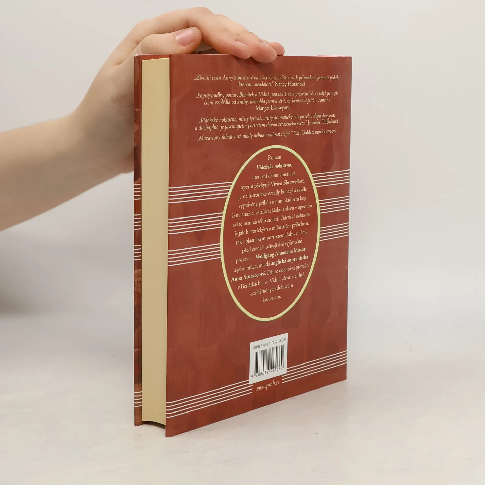 Román Vídeňské nokturno, literární debut americké operní pěvkyně Vivien Shotwellové, je na historické detaily bohatý a skvěle vyprávěný příběh o mimořádném boji ženy snažící se získat lásku a slávu v operním světě osmnáctého století. Vídeňské nokturno je jak historickým a milostným příběhem, tak i plastickým portrétem doby, v němž před čtenáři ožívají dvě výjimečné postavy – Wolfgang Amadeus Mozart a jeho múza, mladá anglická sopranistka Anna Storaceová. Děj se odehrává převážně v Benátkách a ve Vídni, věrně a citlivě ozvláštněných dobovým koloritem.