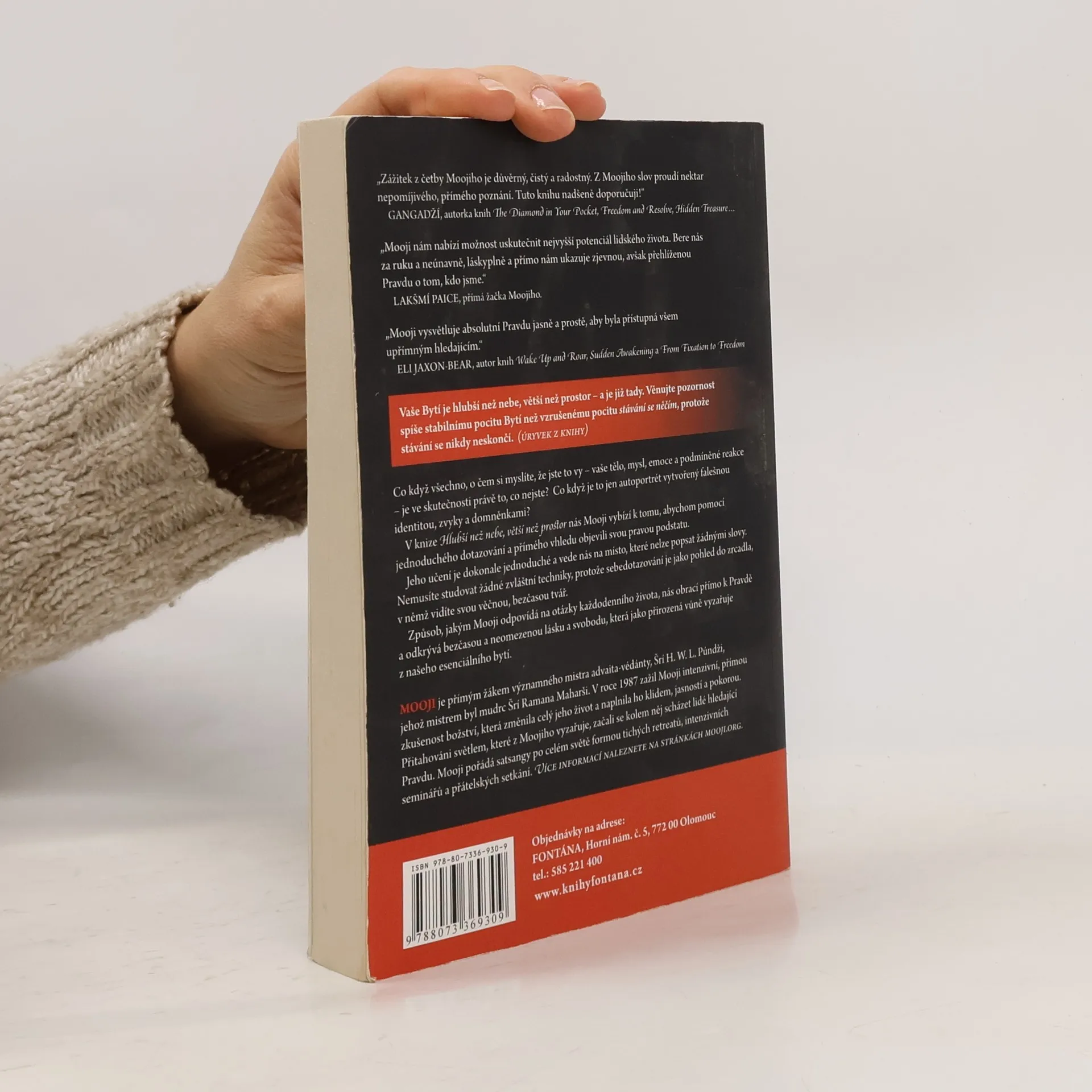 Vaše Bytí je hlubší než nebe, větší než prostor – a je již tady. Zaměřte se na stabilní pocit Bytí, nikoli na vzrušení ze stávání se něčím, protože stávání se nikdy neskončí. Co když to, co považujete za sebe – vaše tělo, mysl, emoce a podmíněné reakce – je ve skutečnosti jen autoportrét vytvořený falešnou identitou? Mooji nás v této knize vybízí k tomu, abychom pomocí jednoduchého dotazování a přímého vhledu objevili svou pravou podstatu. Jeho učení je jednoduché a vede nás na místo, které nelze popsat slovy. Sebedotazování je jako pohled do zrcadla, kde vidíme svou věčnou tvář. Moojiho odpovědi na každodenní otázky nás obrací k Pravdě a odkrývají bezčasou lásku a svobodu, jež vyzařují z našeho esenciálního bytí. Zážitek z četby Moojiho je důvěrný a radostný, jeho slova přinášejí nektar přímého poznání. Gangadží, autorka několika knih, doporučuje jeho práci jako inspirativní. Lakšmí Paice, přímá žačka Mooji, zdůrazňuje, že Mooji nám ukazuje pravdu o tom, kdo jsme, a nabízí možnost naplnit náš nejvyšší potenciál.