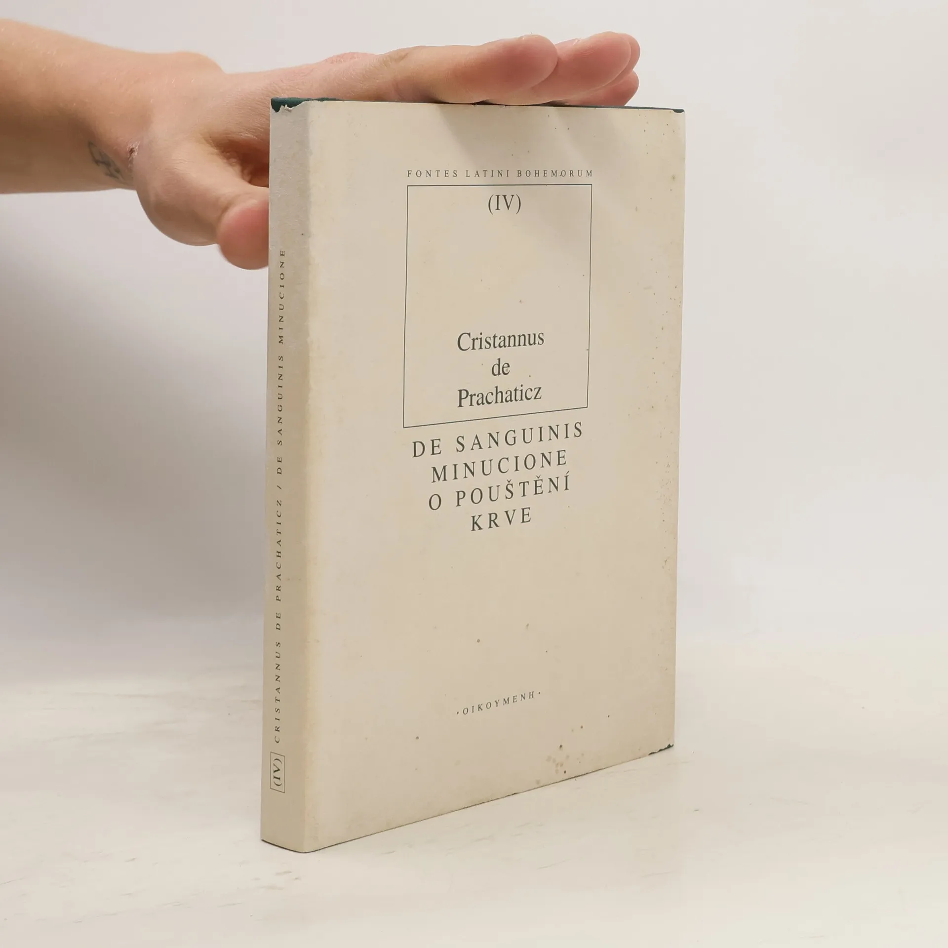 Edici latinského textu De sanguinis minucione s českým překladem, českou a německou úvodní studií a poznámkami připravila H. Florianová-Miškovská. Spis pojednává o problematice pouštění krve žilou, jejíž součástí je i vyšetřování krve.
