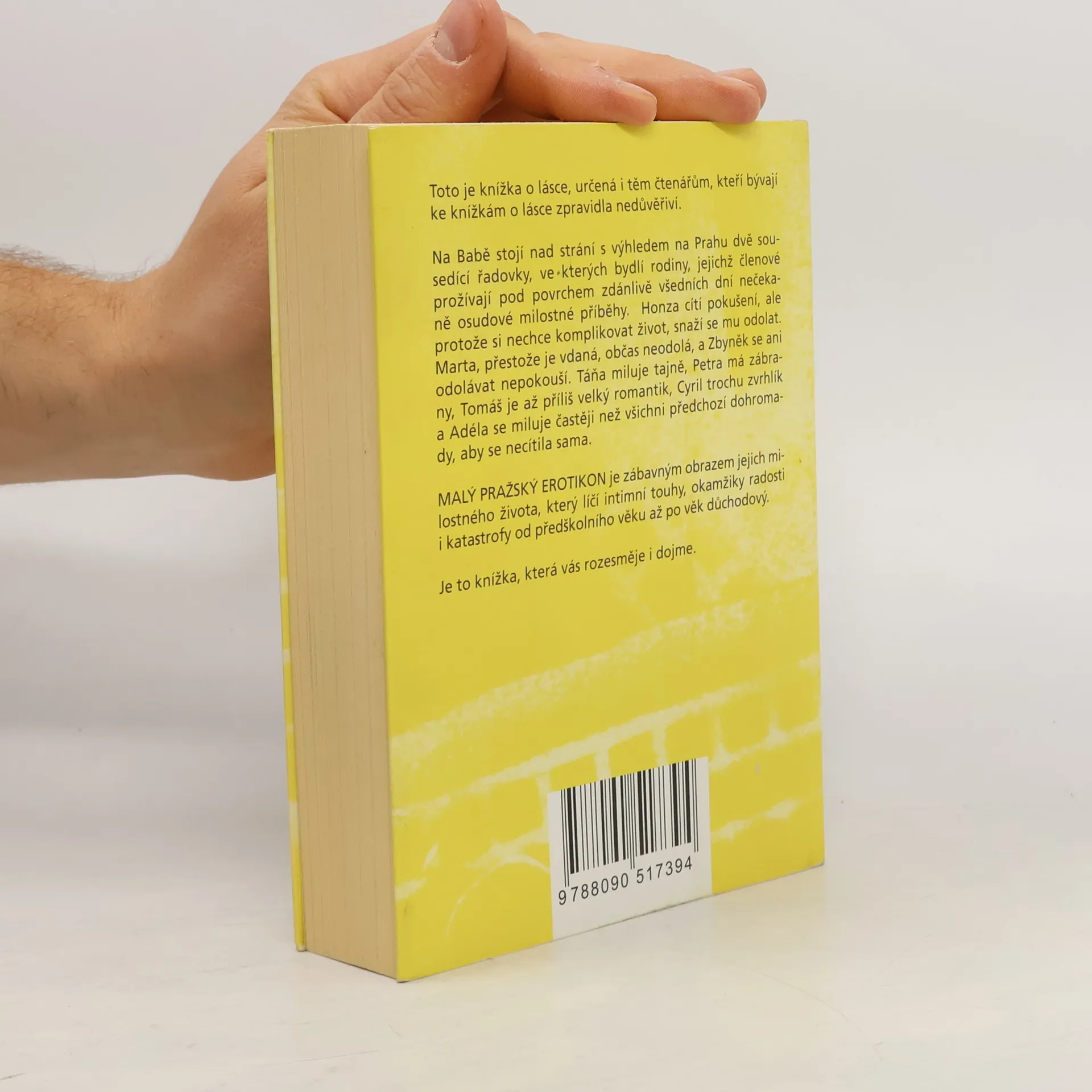 Malý pražský erotikon je druhým románem režiséra a autora úspěšných divadelních komedií Patrika Hartla, jehož literární prvotina PRVOK, ŠAMPÓN, TEČKA a KAREL se těší velkému zájmu čtenářů. Tento nový román je díky autorovu nekonformnímu nadhledu a smyslu pro humor určený i těm, kteří bývají ke knížkám o lásce zpravidla nedůvěřiví. Na Babě stojí nad strání s výhledem na Prahu dvě sousedící řadovky, ve kterých bydlí rodiny, jejichž členové prožívají pod povrchem zdánlivě všedních dní nečekaně osudové milostné příběhy. Honza cítí pokušení, ale protože si nechce komplikovat život, snaží se mu odolat. Marta, přestože je vdaná, občas neodolá, a Zbyněk se ani odolávat nepokouší. Táňa miluje tajně, Petra má zábrany, Tomáš je až příliš velký romantik, Cyril trochu zvrhlík a Adéla se miluje častěji než všichni předchozí dohromady, aby se necítila sama. Malý pražský erotikon je zábavným obrazem jejich intimního života, který líčí jejich touhy, okamžiky radosti i katastrofy od předškolního věku až po věk důchodový.