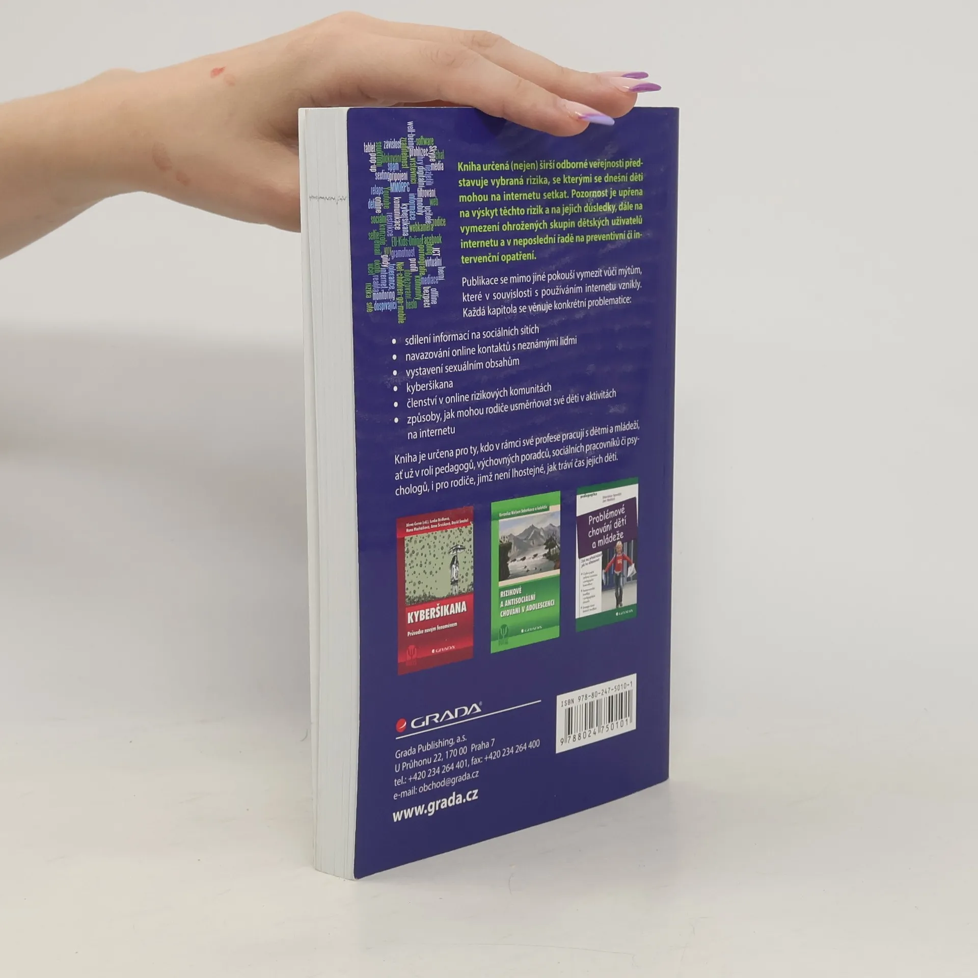 Kniha určená nejen širší odborné veřejnosti představuje vybraná rizika, se kterými se dnešní děti mohou na internetu setkat. Pozornost je upřena na jejich výskyt a důsledky, dále na vymezení ohrožených skupin dětských uživatelů internetu a v neposlední řadě na preventivní či intervenční opatření.