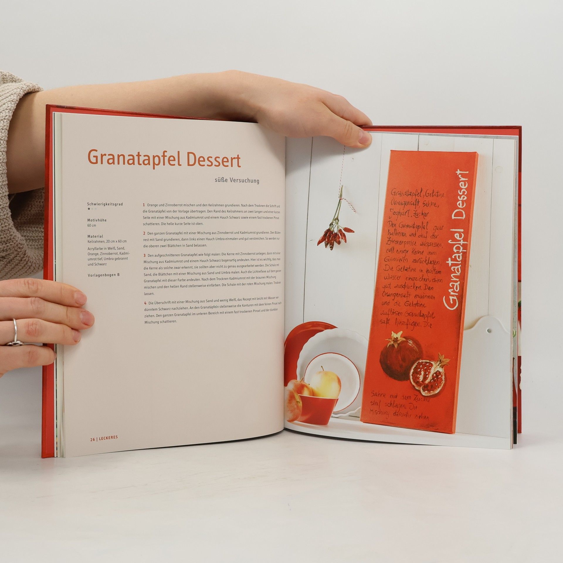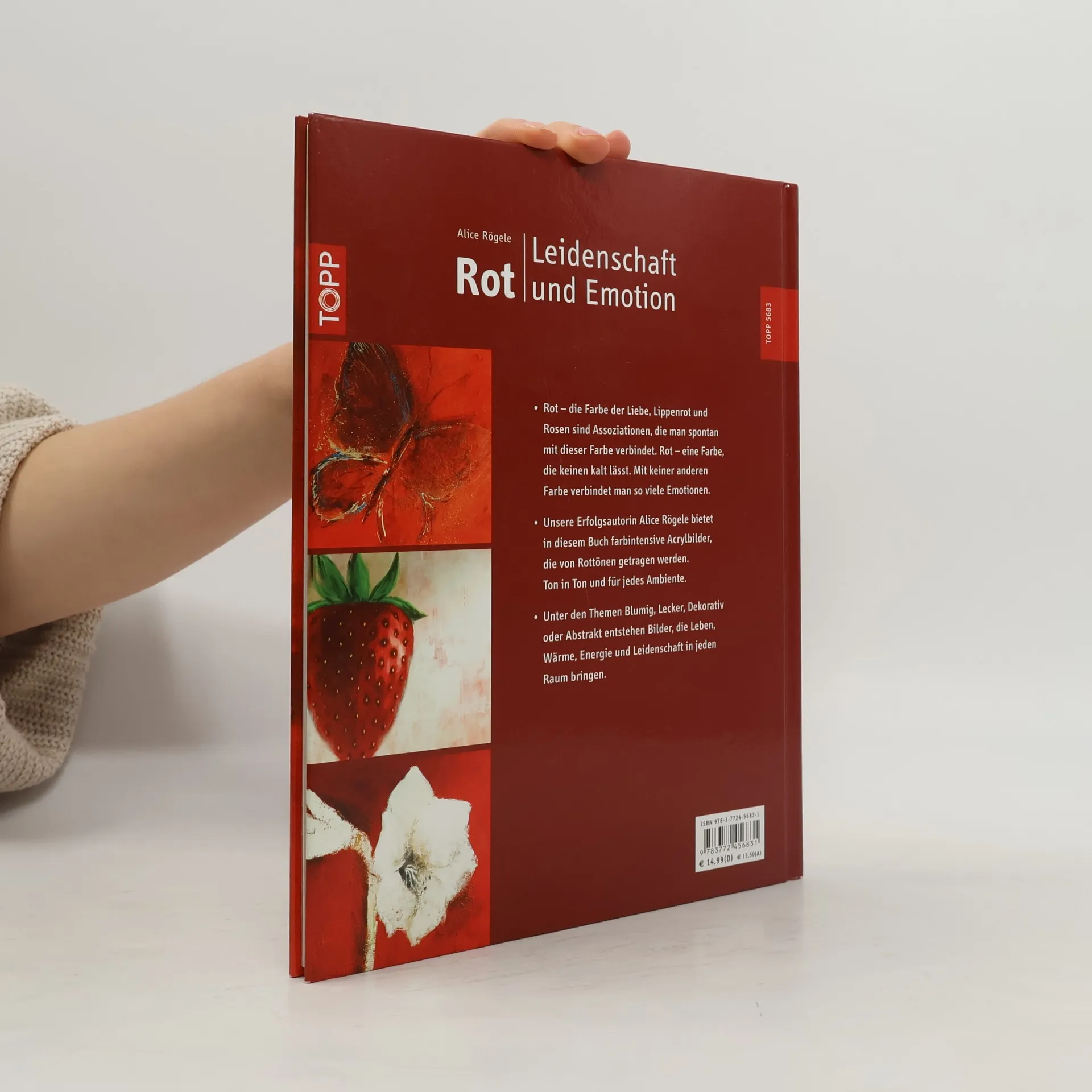 Rot ist die Farbe der Liebe, der Emotionen, der Leidenschaft, der Wärme. Sie lässt wirklich keinen kalt. Unsere Erfolgsautorin Alice Rögele bietet in diesem Buch farbintensive Acrylbilder, die von Rottönen getragen werden, Ton in Ton und für jedes Ambiente. Ein modernes Mohnblumenfeld, leckere Granatäpfel für die Küche, dekorative Herzen und andere vielseitige Motive bringen Leben und Energie in jeden Raum. 80 Seiten, 20 x 26 cm, Hardcover, mit Vorlagenbogen.
