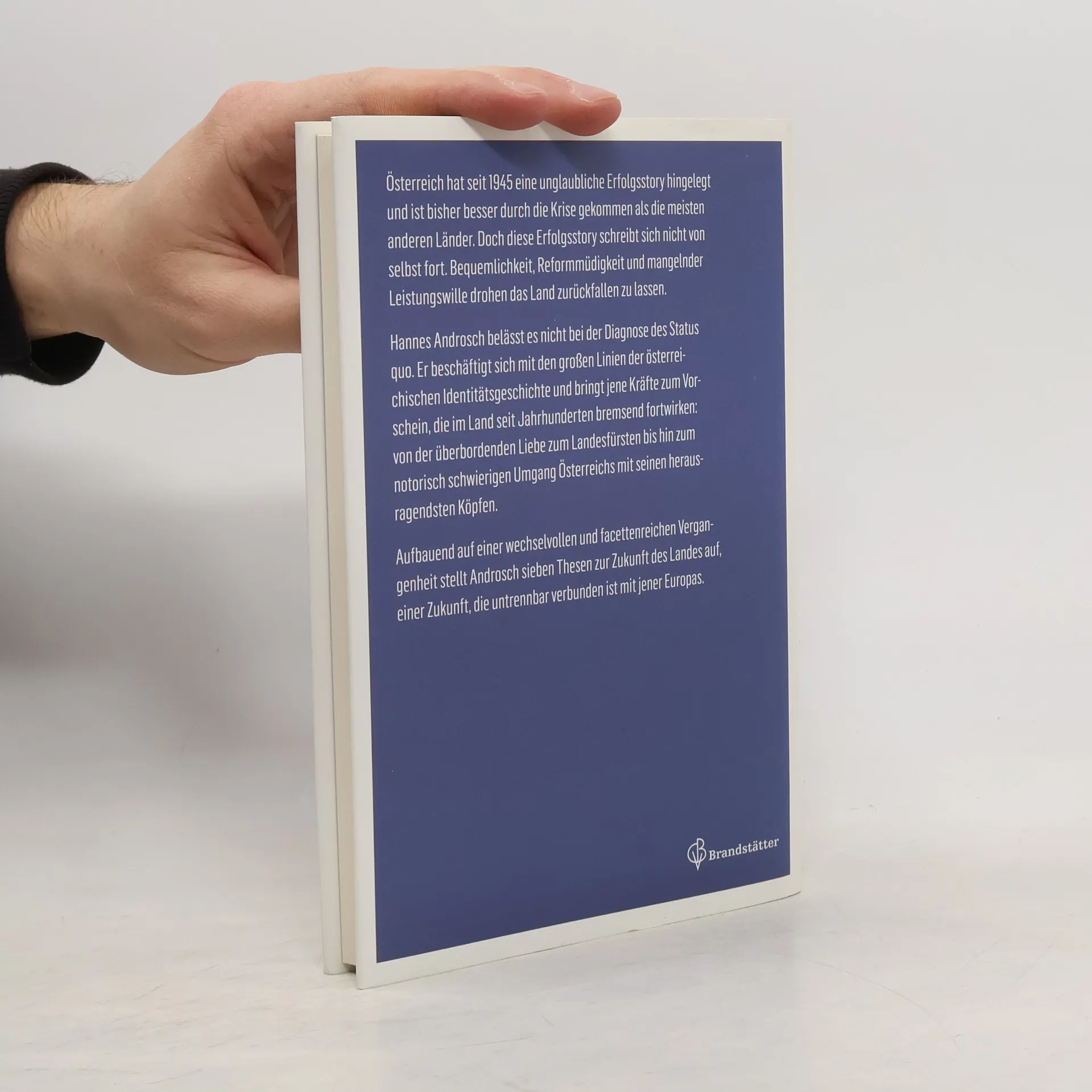 Österreich hat seit 1945 eine unglaubliche Erfolgsstory hingelegt und ist bisher besser durch die Krise gekommen als die meisten anderen Länder. Doch diese Erfolgsstory schreibt sich nicht von selbst fort. Bequemlichkeit, Reformmüdigkeit und mangelnder Leistungswille drohen das Land zurückfallen zu lassen, schreibt Hannes Androsch. Der frühere Finanzminister belässt es nicht bei der Diagnose des Status Quo. Er beschäftigt sich mit den großen Linien der österreichischen Identitäts-Geschichte und bringt jene Kräfte zum Vorschein, die im Land seit Jahrhunderten bremsend fortwirken: Von der überbordenden Liebe zum Landesfürsten bis hin zum notorisch schwierigen Umgang Österreichs mit seinen herausragendsten Köpfen. Aufbauend auf einer wechselvollen und facettenreichen Vergangenheit stellt Androsch sieben Thesen zur Zukunft des Landes auf. Und diese Zukunft ist untrennbar verbunden mit jener Europas: Warum der europäische Wohlfahrtsstaat reformiert werden muss, wie den neuen Polit-Populisten des Kontinents das Wasser abgegraben werden kann und was ein Europa ohne Euro bedeuten würde, sind deshalb Schlüsselpassagen dieser streitbaren Schrift.