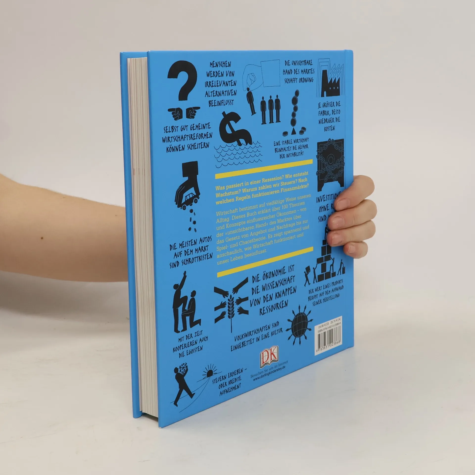 So funktioniert Wirtschaft Was ist ein gerechter Preis? Warum kosten Diamanten mehr als Wasser? Können wir arme Länder anschieben, indem wir ihnen die Schulden erlassen? Weshalb spiegelt der Immobilienmarkt Auf- und Abschwünge wider? In Zeiten, in denen Wirtschaftsthemen die Nachrichten beherrschen, ist es wichtiger denn je, über die Hintergründe Bescheid zu wissen. „Das Wirtschaftsbuch“ erklärt auf spannende, moderne und leicht verständliche Weise über 100 zentrale Theorien der Wirtschaftswissenschaften, mit denen wir das Zusammenspiel der Märkte und Interessen sowie den vielfältigen Einfluss wirtschaftlicher Entwicklungen auf unser Leben verstehen können. Anhand übersichtlicher Diagramme werden die zentralen Gedankengänge veranschaulicht. Porträts wichtiger Ökonomen und hervorgehobene Kurz-Biografien liefern umfassende Informationen zum Leben der Wissenschaftler und ihren Thesen. Außerdem wird jede Theorie durch übersichtliche Querverweise in einen historischen Zusammenhang gestellt und einem speziellen Schwerpunkt zugeordnet. So entsteht eine spannende Einführung in die Ökonomie und ihre unterschiedlichen Fachbereiche. Von der Dependenztheorie bis zur Verhaltensökonomie - dieses innovative Buch animiert sogar „Wirtschaftsmuffel“ zum Reinlesen, Nachschlagen und Auffrischen. Perfekt auch für Schüler und Studenten!