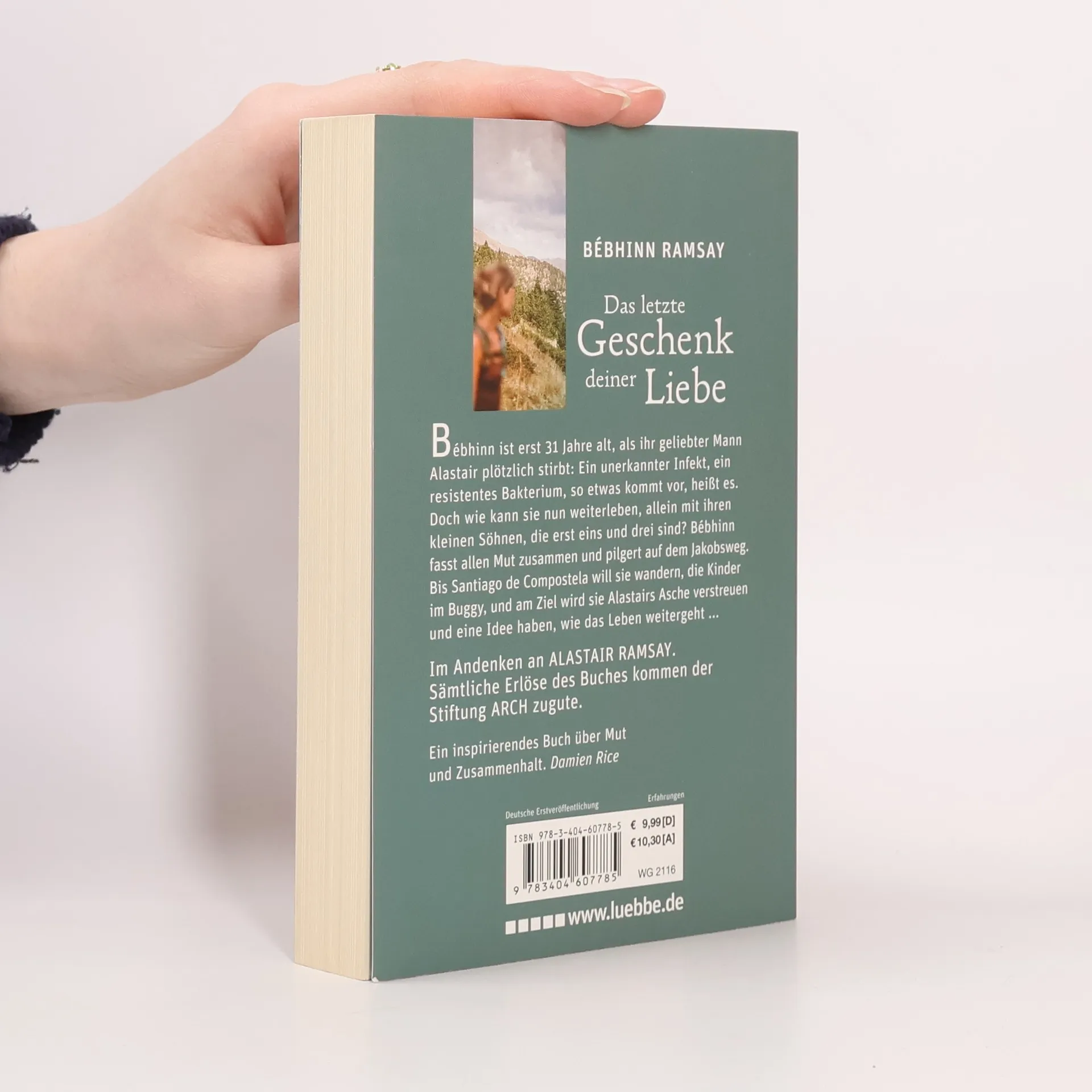 Bébhinn ist erst 31 Jahre alt, als ihr geliebter Mann Alastair plötzlich stirbt: Ein unerkannter Infekt, ein resistentes Bakterium, so etwas kommt vor, heißt es. Doch wie kann sie nun weiterleben, allein mit ihren kleinen Söhnen, die erst eins und drei sind? Bébhinn fasst allen Mut zusammen und pilgert auf dem Jakobsweg. Bis Santiago de Compostela will sie wandern, die Kinder im Buggy, und am Ziel wird sie Alastairs Asche verstreuen und eine Idee haben, wie das Leben weitergeht... Ein inspirierendes Buch über Mut und Zusammenhalt. Damien Rice