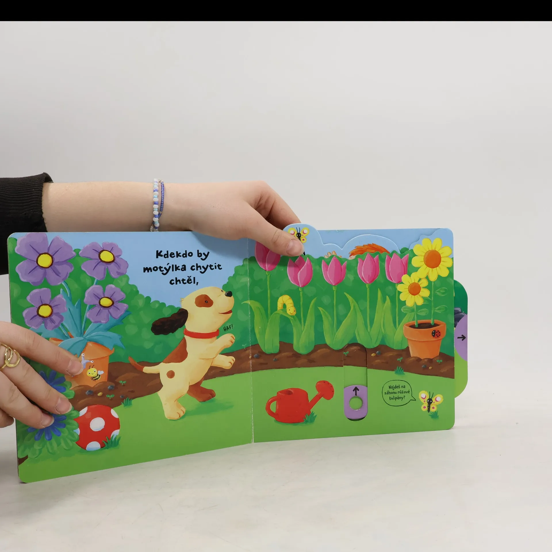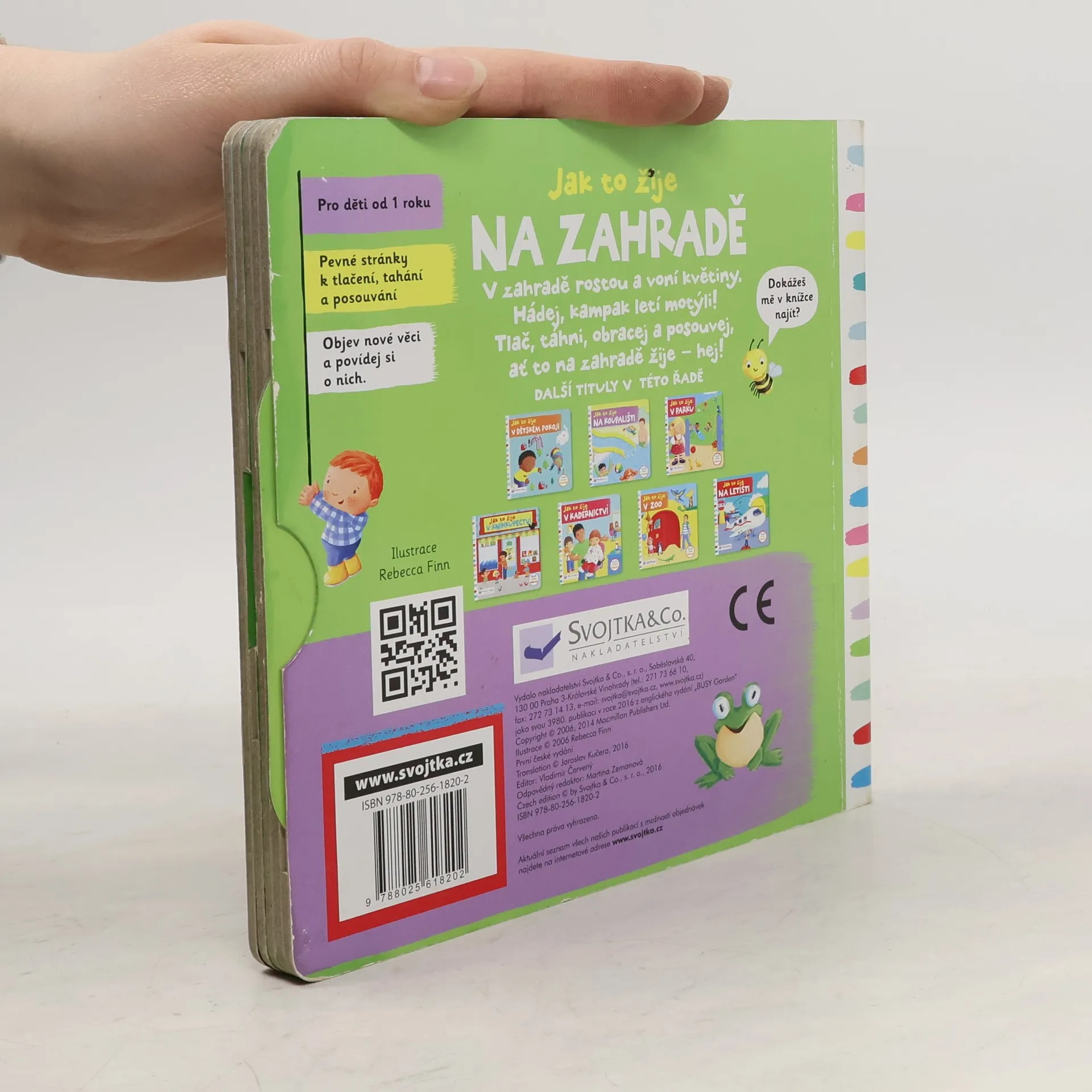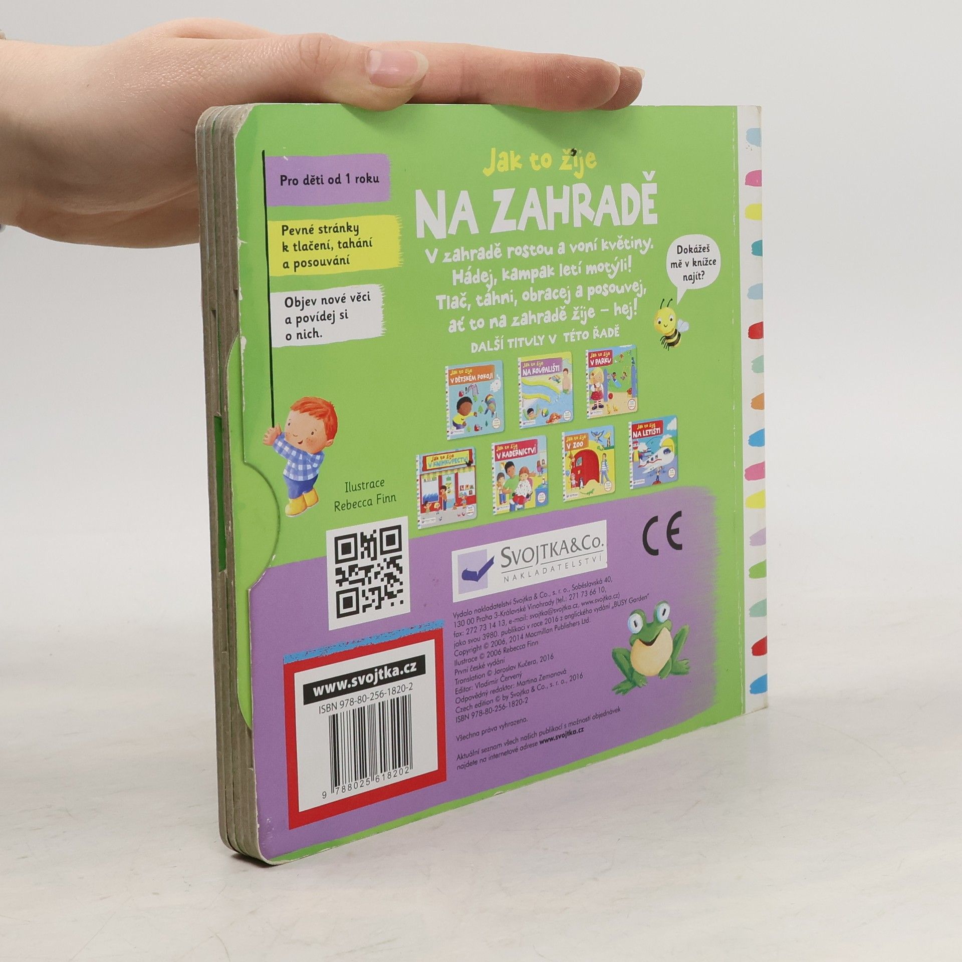 Leporelo je určeno pro děti od jednoho roku. Má pevné stránky s posuvnými a otočnými prvky. Zjisti, jak to žije na zahradě, a procvič si svou jemnou motoriku!Zajímá tě, jak to žije na zahradě? Vezmi konvičku a zalej kytičky vodou! Pohoupej kluka na houpačce tam a zase zpátky! Kampak odletí motýli? Toto dětské leporelo je určeno pro děti od jednoho roku. Má pevné stránky s posuvnými a otočnými prvky, a tak si dítě při prohlížení knížky současně procvičí jemnou motoriku – může na jednotlivých stránkách posouvat, tahat, otáčet. Objeví nové věci a můžete si o nich společně povídat! Tak honem, v zahradě rostou a voní květiny a je tam plno překvapení!