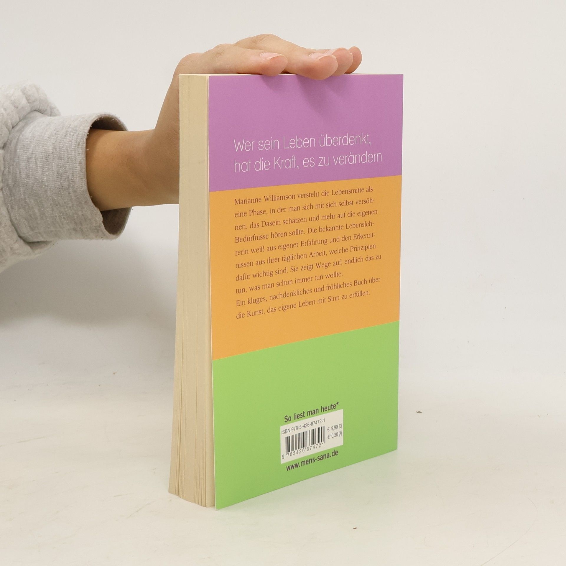 Marianne Williamson, die bekannte spirituelle Lehrerin, versteht die Lebensmitte als eine Phase, in der man sich selbst versöhnen, seinen Visionen folgen und mehr auf die eigenen Bedürfnisse hören sollte. Sie weiß aus eigener Erfahrung und Erlebnissen in ihrer täglichen Arbeit, welche Prinzipien dafür wichtig sind. Und sie zeigt Wege auf, endlich so zu leben, wie man es schon immer tun wollte.