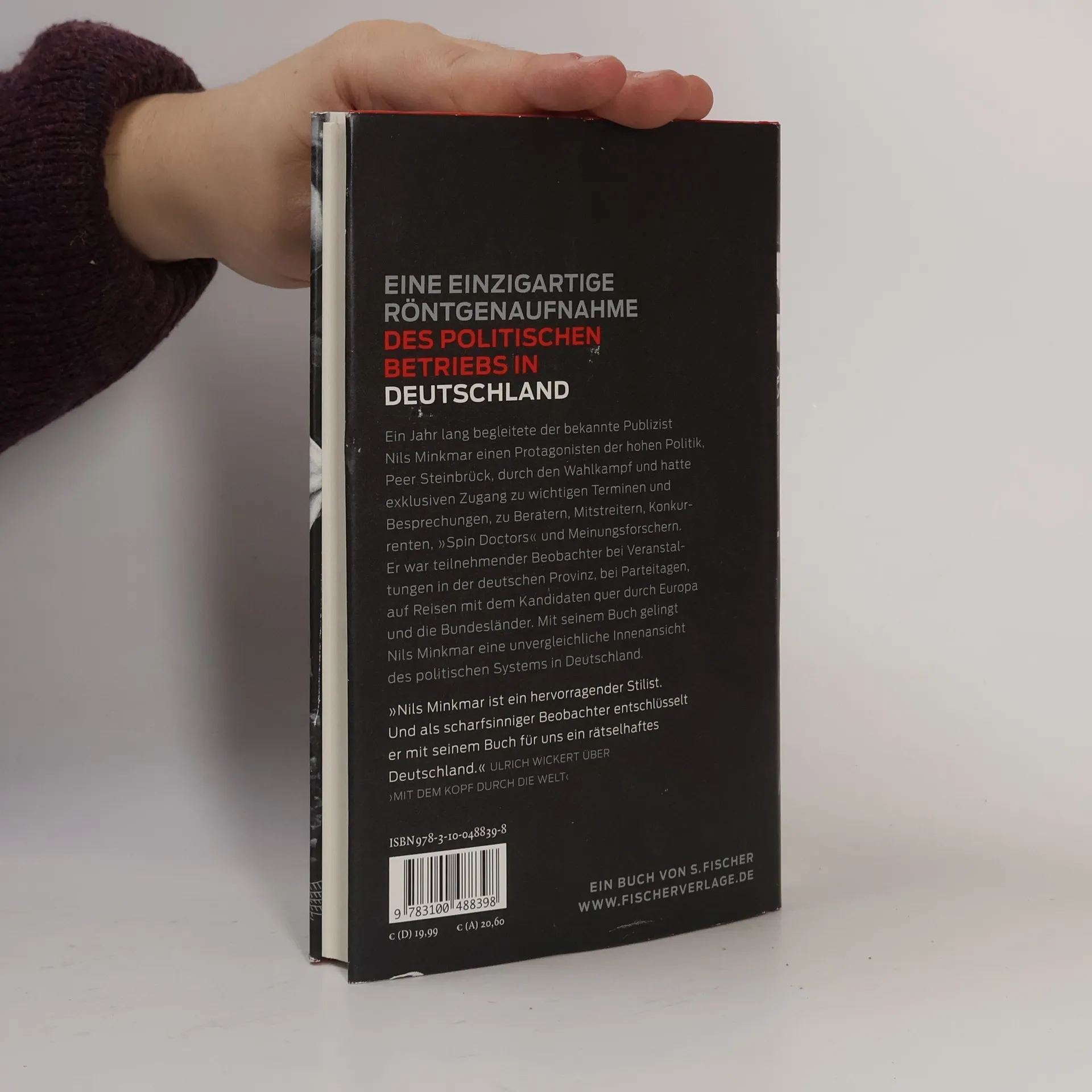 Eine einzigartige Röntgenaufnahme des politischen Betriebs in Deutschland Politiker sind Stars. Sie werden erkannt, umringt, bevorzugt behandelt und auch lange nach ihrem Ausscheiden aus dem Amt nicht vergessen. Und doch ist unser Wissen um das Leben, die Kultur an der politischen Spitze mehr von Mythen und Ahnungen durchzogen denn aus Anschauung informiert. Der renommierte Journalist und Publizist Nils Minkmar begleitet fast ein Jahr lang einen Protagonisten der hohen Politik, Peer Steinbrück, durch den Wahlkampf und hat exklusiven Zugang zu wichtigen Terminen und Besprechungen. So gelingt ihm eine unvergleichliche Innenansicht des politischen Systems in Deutschland. Darüber hinaus schildert Nils Minkmar eindrucksvoll die Dynamik der Medien, den Betrieb der sozialen Netzwerke, die Reaktionen des Publikums und den größeren historischen Kontext des Wahlkampfs im wirtschaftlich stärksten Land Europas. 'Nils Minkmar ist ein hervorragender Stilist. Und als scharfsinniger Beobachter entschlüsselt er mit seinem Buch für uns ein rätselhaftes Deutschland.' Ulrich Wickert über ›Mit dem Kopf durch die Welt‹