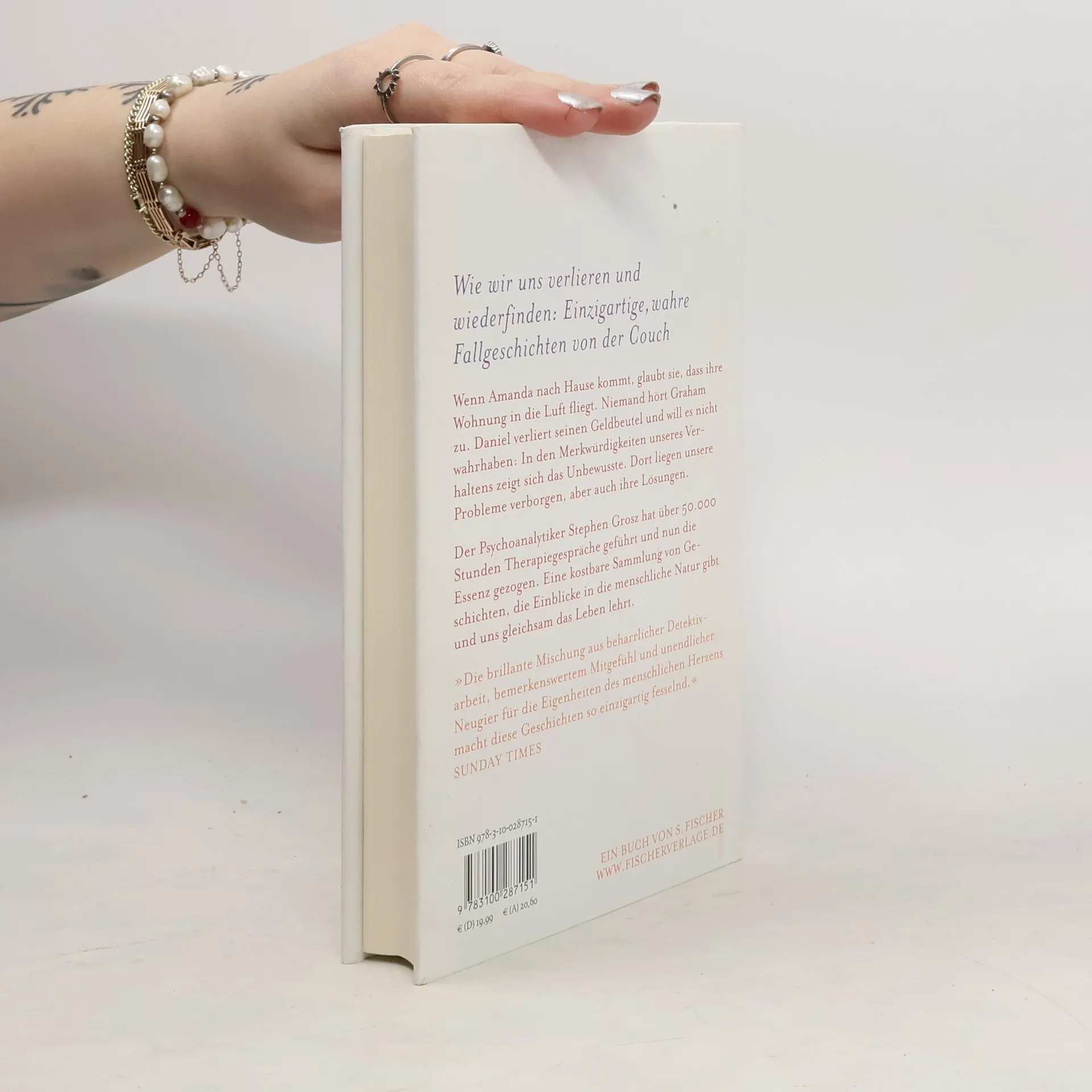 Wie wir uns verlieren und wiederfinden: Einzigartige, wahre Fallgeschichten von der Couch. Wenn Amanda nach Hause kommt, glaubt sie, dass ihre Wohnung in die Luft fliegt. Niemand hört Graham zu. Daniel verliert seinen Geldbeutel und will es nicht wahrhaben: In den Merkwürdigkeiten unseres Verhaltens zeigt sich das Unbewusste. Dort liegen unsere Probleme verborgen, aber auch ihre Lösungen. Der Psychoanalytiker Stephen Grosz hat über 50 000 Stunden Therapiegespräche geführt und nun die Essenz daraus gezogen. Eine kostbare Sammlung von Geschichten, die Einblicke in die menschliche Natur gibt und uns gleichsam das Leben lehrt. »Ein einfühlsames und wundervoll geschriebenes Buch. Es liest sich wie eine Mischung aus Tschechow und Oliver Sacks.« Michiko Kakutani, New York Times »Die brillante Mischung aus beharrlicher Detektivarbeit, bemerkenswertem Mitgefühl und unendlicher Neugier für die Eigenheiten des menschlichen Herzens, macht diese Geschichten so einzigartig fesselnd.« Sunday Times »Engagiert, offen und voller Einsichten. Die kurzen und lakonischen Kapitel sind spannend und erfüllend … Ein anregendes Buch.« The Spectator »Höchst lesenswert…« New Statesman