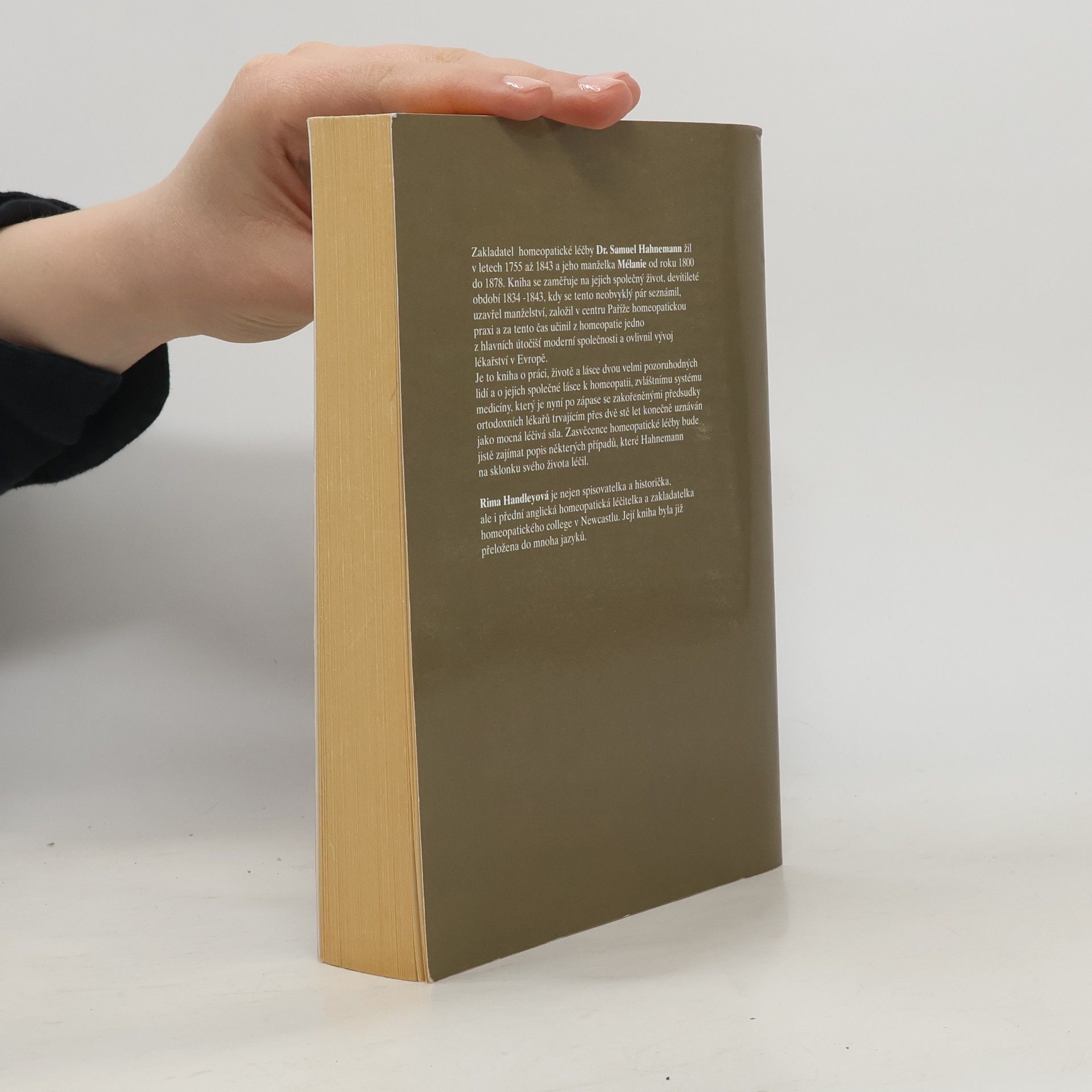Kniha líčí devítileté období (1834-43) práce a života manželů Hahnemannových, propagátorů homeopatické léčby, v době kdy si založili v centru Paříže homeopatickou praxi. Dovídáme se o zápasu této nové metody s obecně uznávanou lékařskou vědou a způsobech léčby, kterou Hahnemann praktikoval. Kniha vypráví také příběh o méně známé Hahnemannově manželce Mélanie, která byla ve své době také velmi úspěšnou homeopatkou.