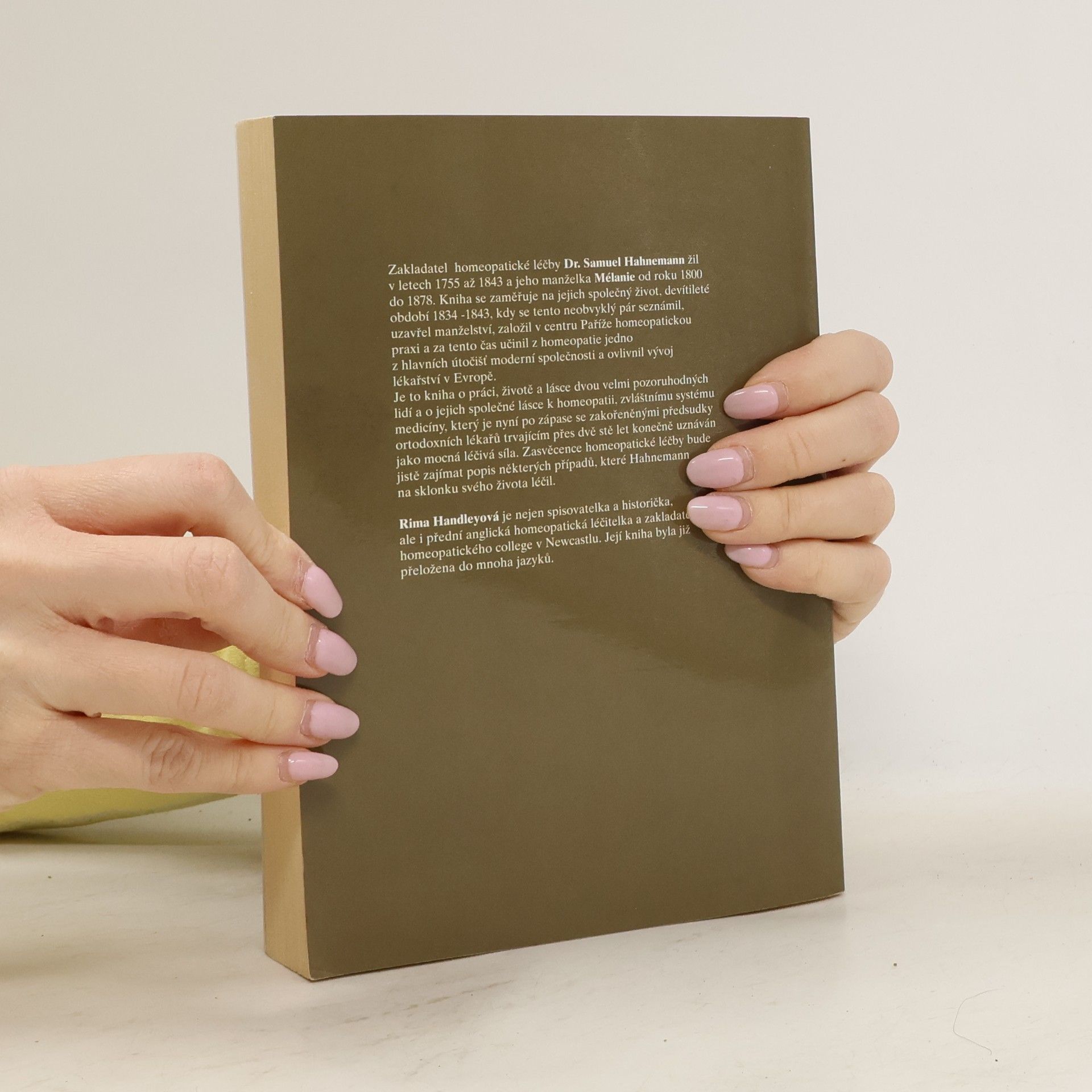 Kniha líčí devítileté období (1834-43) práce a života manželů Hahnemannových, propagátorů homeopatické léčby, v době kdy si založili v centru Paříže homeopatickou praxi. Dovídáme se o zápasu této nové metody s obecně uznávanou lékařskou vědou a způsobech léčby, kterou Hahnemann praktikoval. Kniha vypráví také příběh o méně známé Hahnemannově manželce Mélanie, která byla ve své době také velmi úspěšnou homeopatkou.