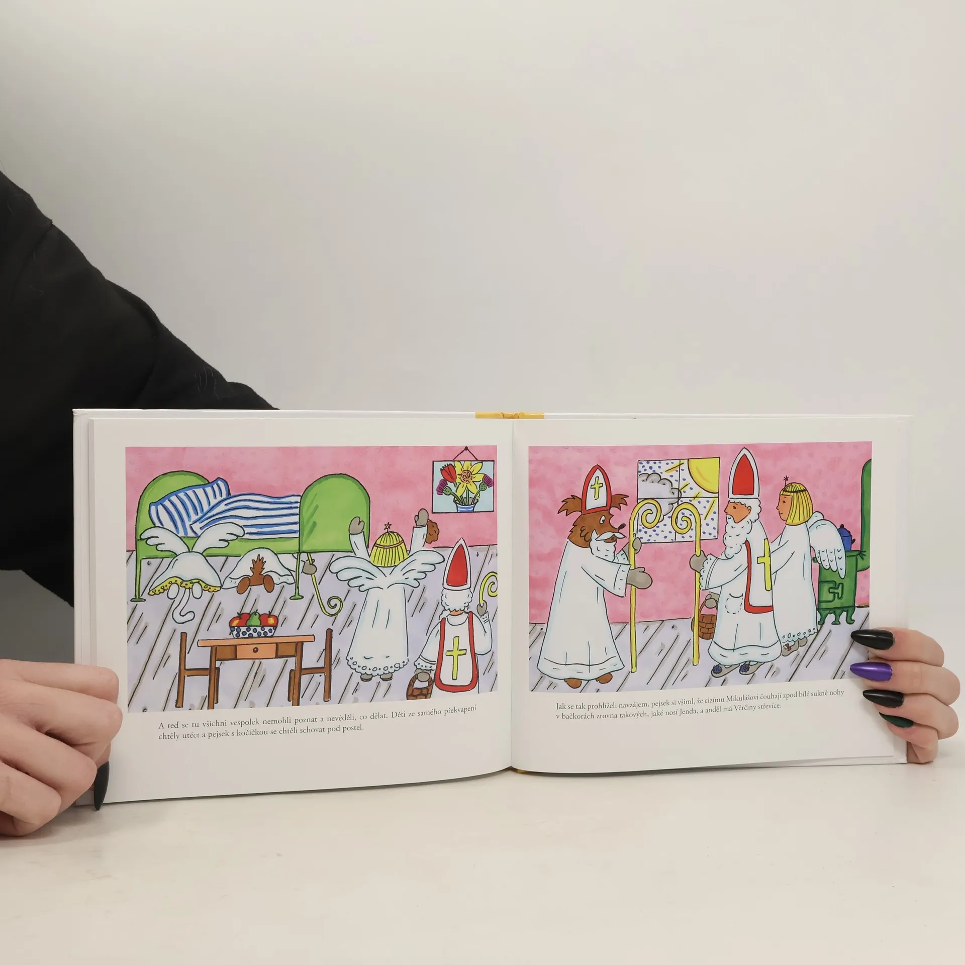 Milé děti, v tomto Povídání o pejskovi a kočičce se dozvíte, jak jsme hráli divadlo a co bylo na Mikuláše. Poznali jsme, že když je člověk nemocný, nemůže ven a musí ležet v postýlce, má dlouhou chvíli a když přijdete někoho takového navštívit, uděláte mu tím velikánskou radost. Pěkně si sedněte a přečtěte si naše povídání, jak to doopravdy s tím divadlem a Mikulášem bylo. A pamatujte si, že dělat jiným radost je krásná věc, protože i my jsme takovou radost přinesli panu Čapkovi, když nás maloval, a jeho malé dcerušce Alence, která mu při tom pomáhala.