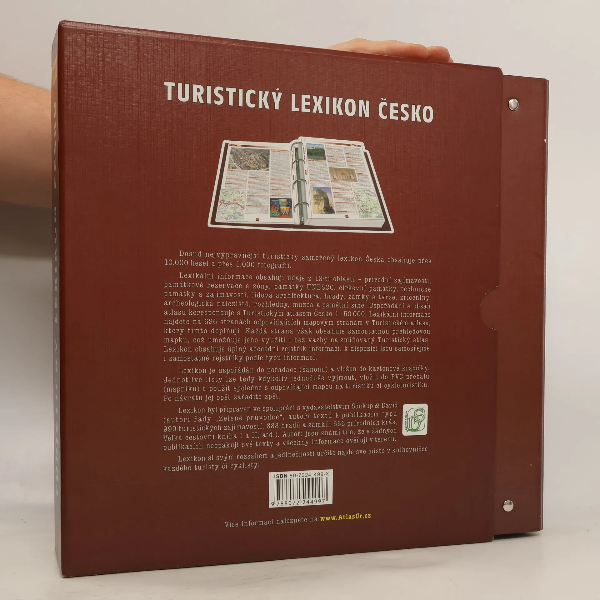 Turistický lexikon Česko obsahuje praktické informace o městech, obcích a turistických zajímavostech. V šanonovém uspořádání najdete opět volné listy velikosti A4, které lze jednotlivě vyjmout a pracovat s nimi samostatně. Na celkem asi 340 listech je cca 10 000 hesel, které doprovází zhruba 1000 fotografií. Každé heslo je zároveň zařazeno příslušným počtem piktogramů celkem dvanácti kategorií jako je hrad, zámek, lidová architektura nebo přírodní zajímavost.