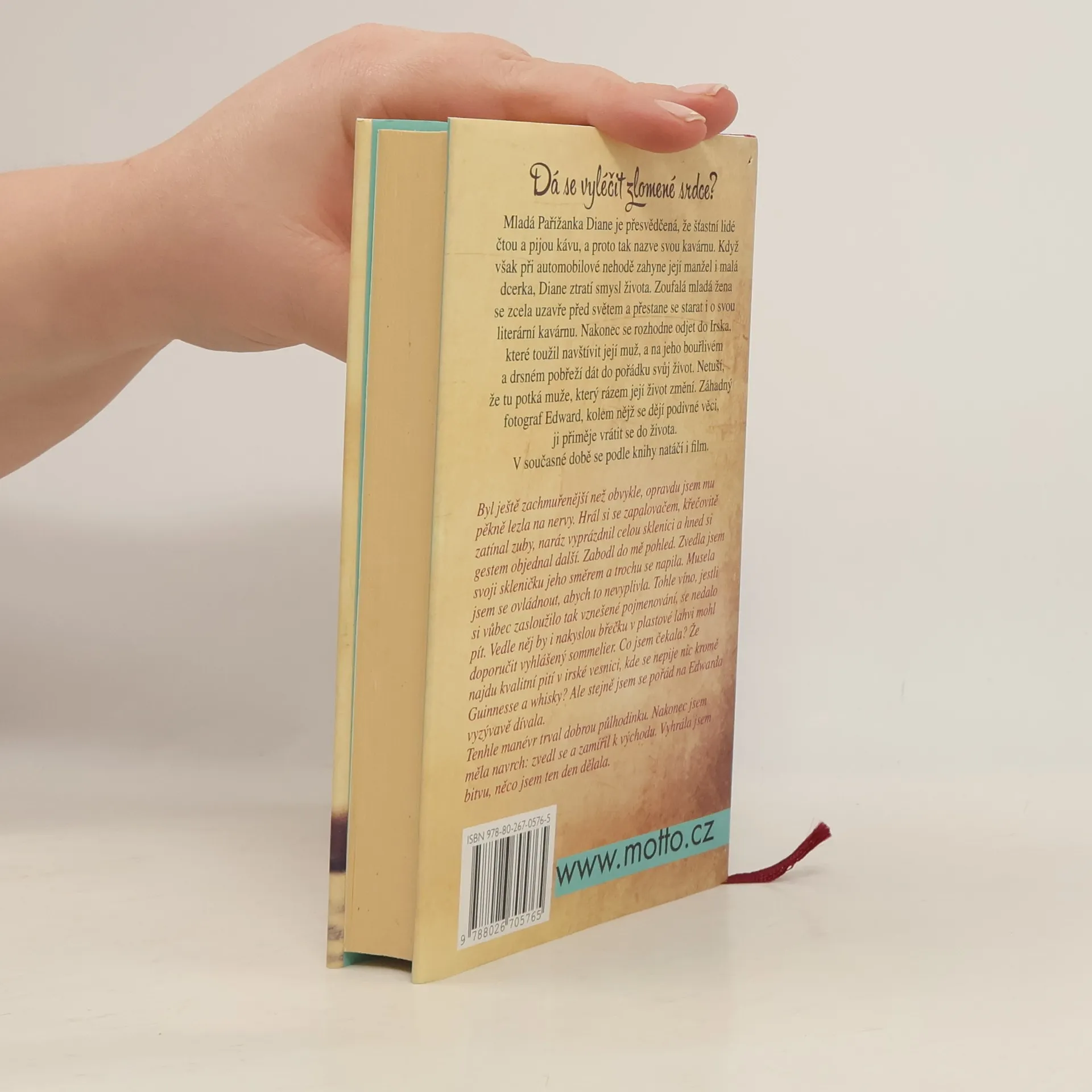 Dá se vyléčit zlomené srdce? Mladá Pařížanka Diane je přesvědčená, že šťastní lidé čtou a pijou kávu, a proto tak nazve svou kavárnu. Když však při automobilové nehodě zahyne její manžel i malá dcerka, Diane ztratí smysl života. Zcela se uzavře před světem a přestane se starat i o svou literární kavárnu. Nakonec se rozhodne odjet do Irska, které toužil navštívit její muž, a na jeho bouřlivém a drsném pobřeží dát do pořádku svůj život. Netuší, že tu potká muže, který rázem její život změní. Záhadný fotograf Edward, kolem nějž se dějí podivné věci, ji přiměje vrátit se do života. V současné době se podle knihy natáčí i film.