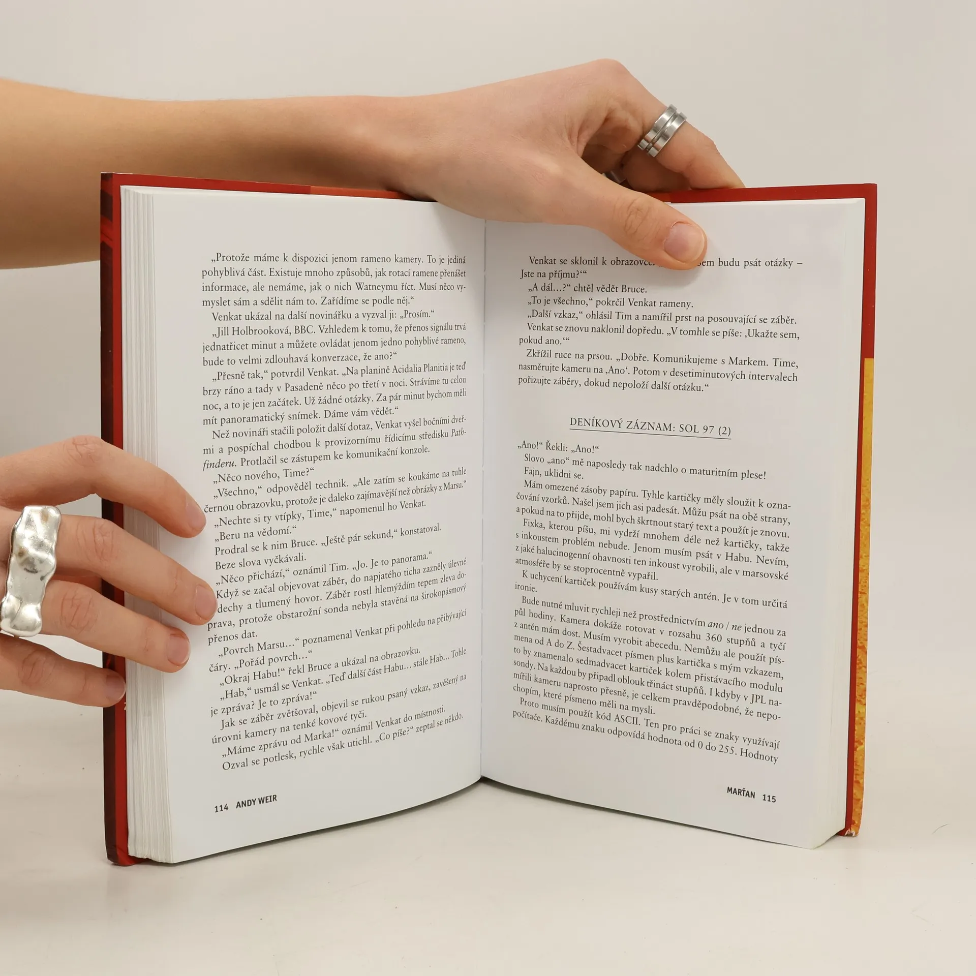 Je nejslavnějším mužem na Zemi. Má to však háček: není na Zemi… Před šesti dny se Mark Watney jako jeden z prvních lidí prošel po Marsu. Teď je přesvědčený, že bude prvním člověkem, který tam zemře. Málem zahynul v prašné bouři a zbytek jeho posádky odletěl v domnění, že je mrtvý. Mark nemá jak odeslat zprávu, že přežil. A i kdyby se s lidmi na Zemi spojit dokázal, zásoby mu dojdou mnohem dřív, než by stačila dorazit pomoc. Mark se však nevzdává. Vyzbrojen pouze svým důvtipem, technickými dovednostmi a nevyčerpatelným smyslem pro humor, který se pro něj stane nejcennějším zdrojem síly, se pouští do tvrdošíjného boje o přežití. Jak zdolává jednu zdánlivě nepřekonatelnou překážku za druhou, začíná věřit, že by na cizí planetě přece jen mohl obstát. Jenže Mars mu ještě přichystá nejedno překvapení… Strhující, podmanivý a přesvědčivý příběh o lidské nezdolnosti a vynalézavosti tváří v tvář beznadějné situaci obletěl celý čtenářský svět a ve všech zemích, kde vychází, sklízí nadšený ohlas. Zaujal i filmové tvůrce, režisér Ridley Scott točí adaptaci s Mattem Damonem v hlavní roli.