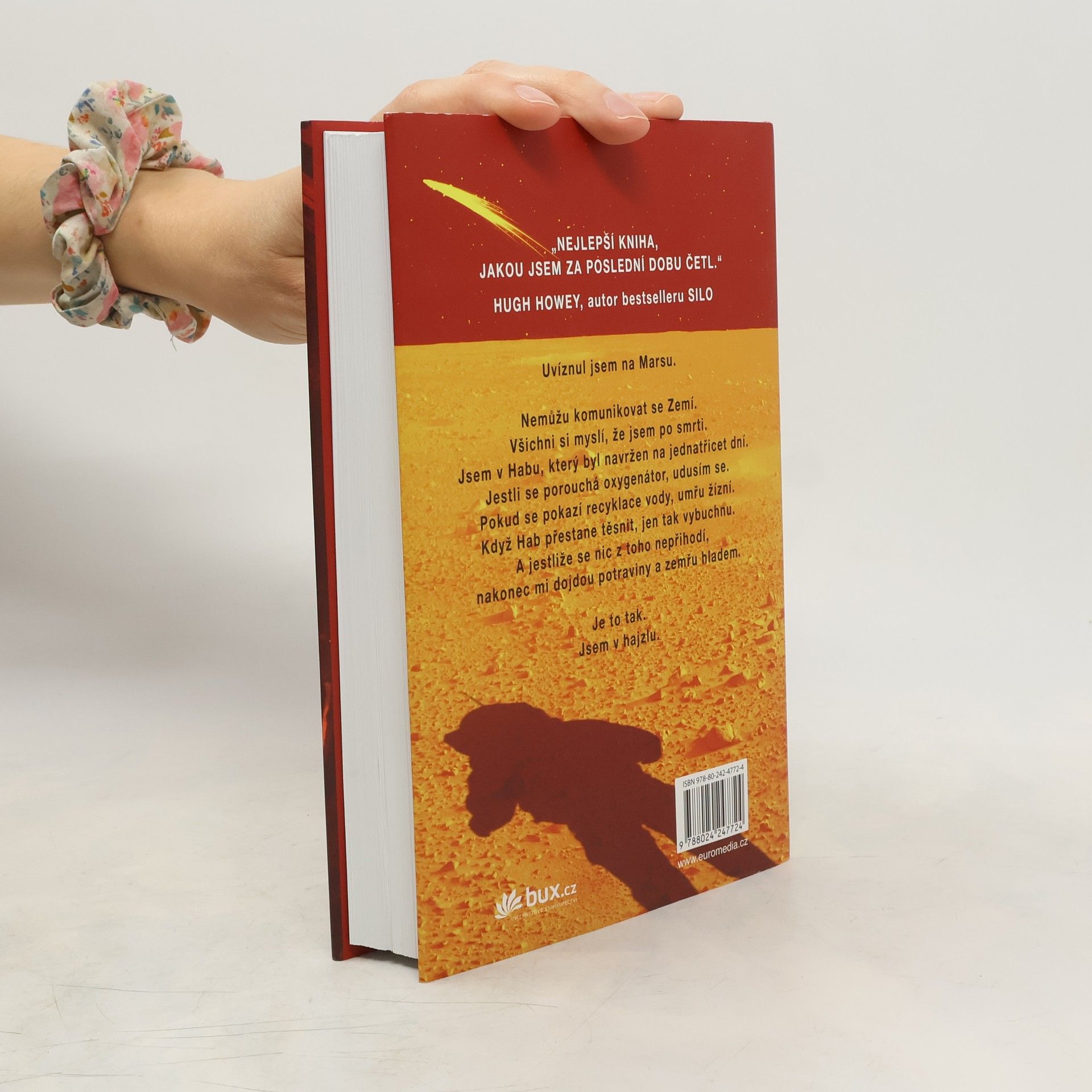Je nejslavnějším mužem na Zemi. Má to však háček: není na Zemi… Před šesti dny se Mark Watney jako jeden z prvních lidí prošel po Marsu. Teď je přesvědčený, že bude prvním člověkem, který tam zemře. Málem zahynul v prašné bouři a zbytek jeho posádky odletěl v domnění, že je mrtvý. Mark nemá jak odeslat zprávu, že přežil. A i kdyby se s lidmi na Zemi spojit dokázal, zásoby mu dojdou mnohem dřív, než by stačila dorazit pomoc. Mark se však nevzdává. Vyzbrojen pouze svým důvtipem, technickými dovednostmi a nevyčerpatelným smyslem pro humor, který se pro něj stane nejcennějším zdrojem síly, se pouští do tvrdošíjného boje o přežití. Jak zdolává jednu zdánlivě nepřekonatelnou překážku za druhou, začíná věřit, že by na cizí planetě přece jen mohl obstát. Jenže Mars mu ještě přichystá nejedno překvapení… Strhující, podmanivý a přesvědčivý příběh o lidské nezdolnosti a vynalézavosti tváří v tvář beznadějné situaci obletěl celý čtenářský svět a ve všech zemích, kde vychází, sklízí nadšený ohlas. Zaujal i filmové tvůrce, režisér Ridley Scott točí adaptaci s Mattem Damonem v hlavní roli.