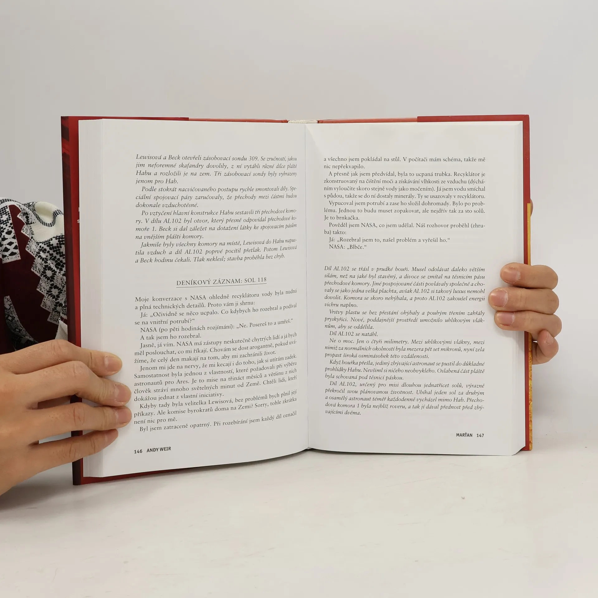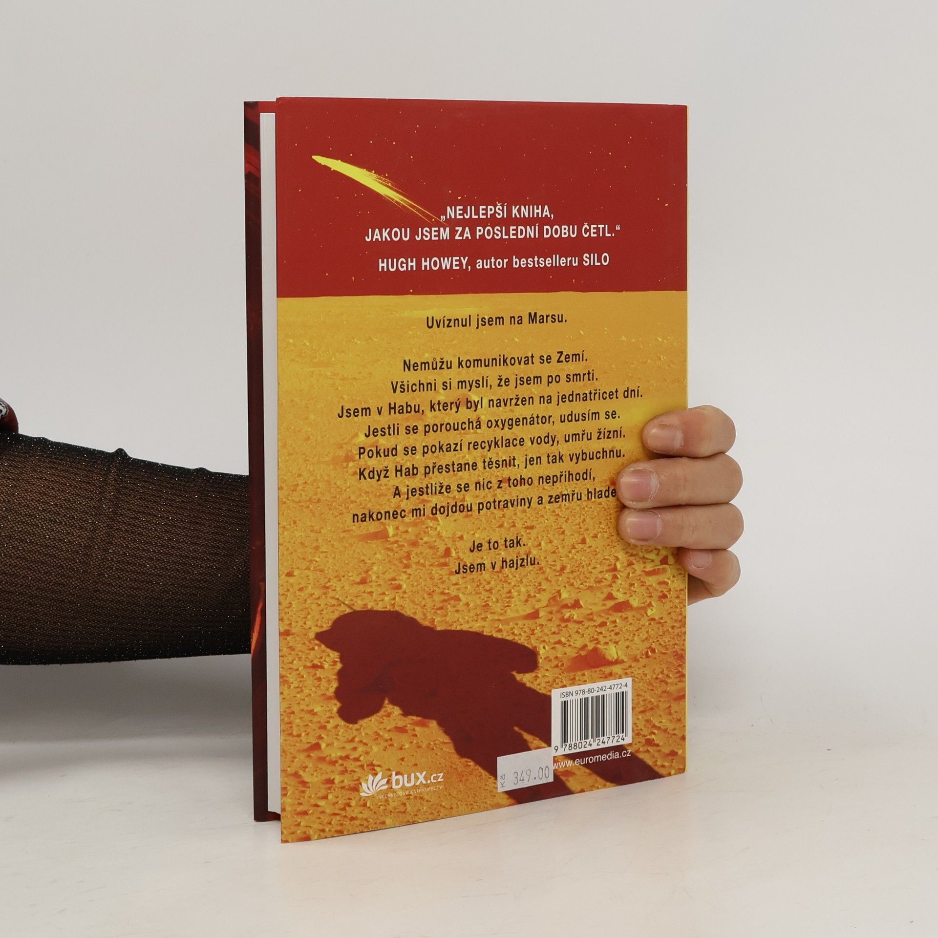 Je nejslavnějším mužem na Zemi. Má to však háček: není na Zemi… Před šesti dny se Mark Watney jako jeden z prvních lidí prošel po Marsu. Teď je přesvědčený, že bude prvním člověkem, který tam zemře. Málem zahynul v prašné bouři a zbytek jeho posádky odletěl v domnění, že je mrtvý. Mark nemá jak odeslat zprávu, že přežil. A i kdyby se s lidmi na Zemi spojit dokázal, zásoby mu dojdou mnohem dřív, než by stačila dorazit pomoc. Mark se však nevzdává. Vyzbrojen pouze svým důvtipem, technickými dovednostmi a nevyčerpatelným smyslem pro humor, který se pro něj stane nejcennějším zdrojem síly, se pouští do tvrdošíjného boje o přežití. Jak zdolává jednu zdánlivě nepřekonatelnou překážku za druhou, začíná věřit, že by na cizí planetě přece jen mohl obstát. Jenže Mars mu ještě přichystá nejedno překvapení… Strhující, podmanivý a přesvědčivý příběh o lidské nezdolnosti a vynalézavosti tváří v tvář beznadějné situaci obletěl celý čtenářský svět a ve všech zemích, kde vychází, sklízí nadšený ohlas. Zaujal i filmové tvůrce, režisér Ridley Scott točí adaptaci s Mattem Damonem v hlavní roli.