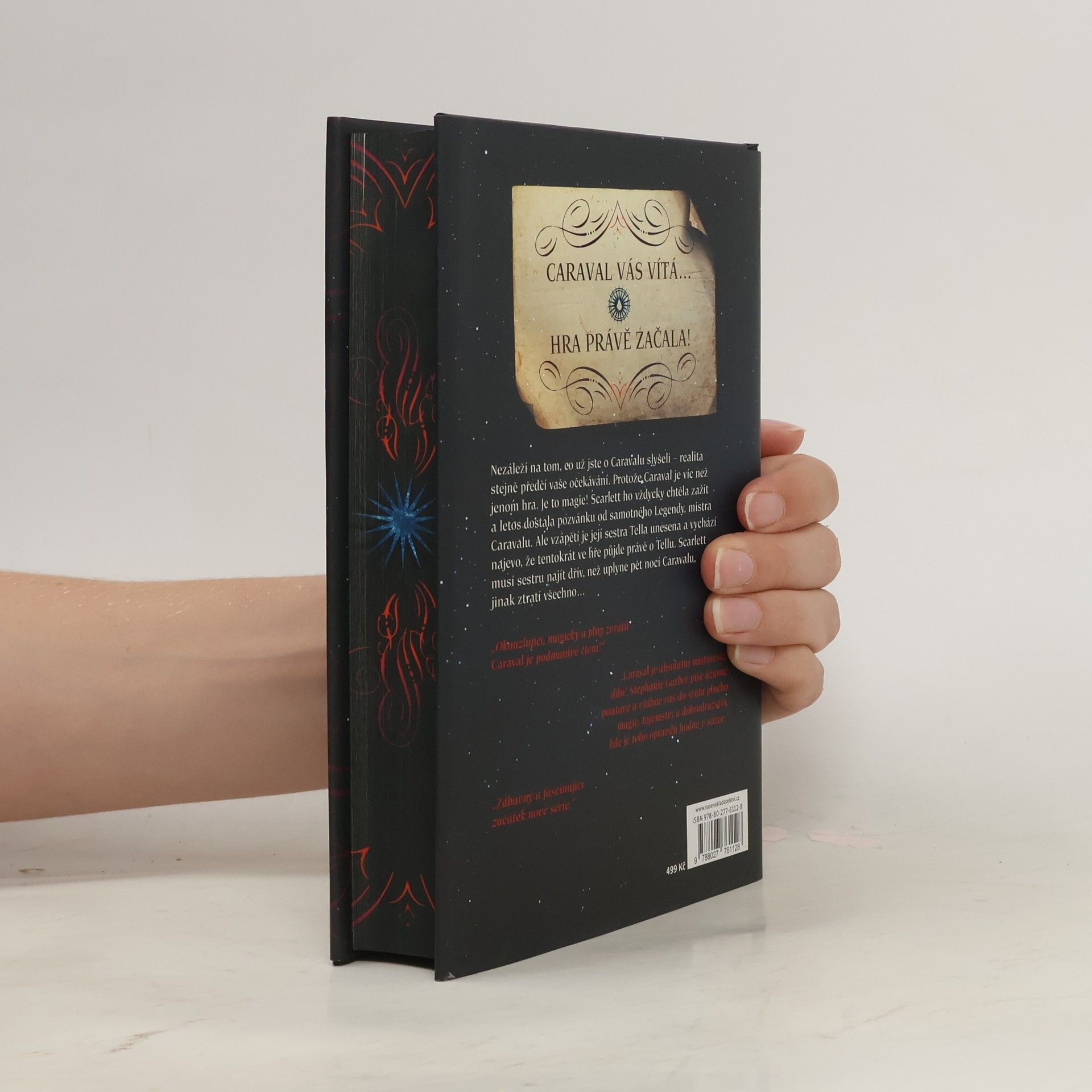 Než vstoupíte do světa Caravalu, mějte na paměti, že je to jen hra... Ať už jste o Caravalu slyšeli cokoli, určitě se to nevyrovná realitě. Je to víc než hra! Je to magie. Scarlett vždy toužila Caraval zažít a letos dostala pozvánku. Jenže vzápětí unese její sestru Tellu tajemný režisér celého představení. Není se čeho bát, Caraval je přece jen zdání. Ale co když ne? Ať už je to jakkoli, Caravalem musí Scarlett projít i se zlomeným srdcem a sestru rychle najít, než se spustí nebezpečný dominový efekt následků a navždy ji ztratí.